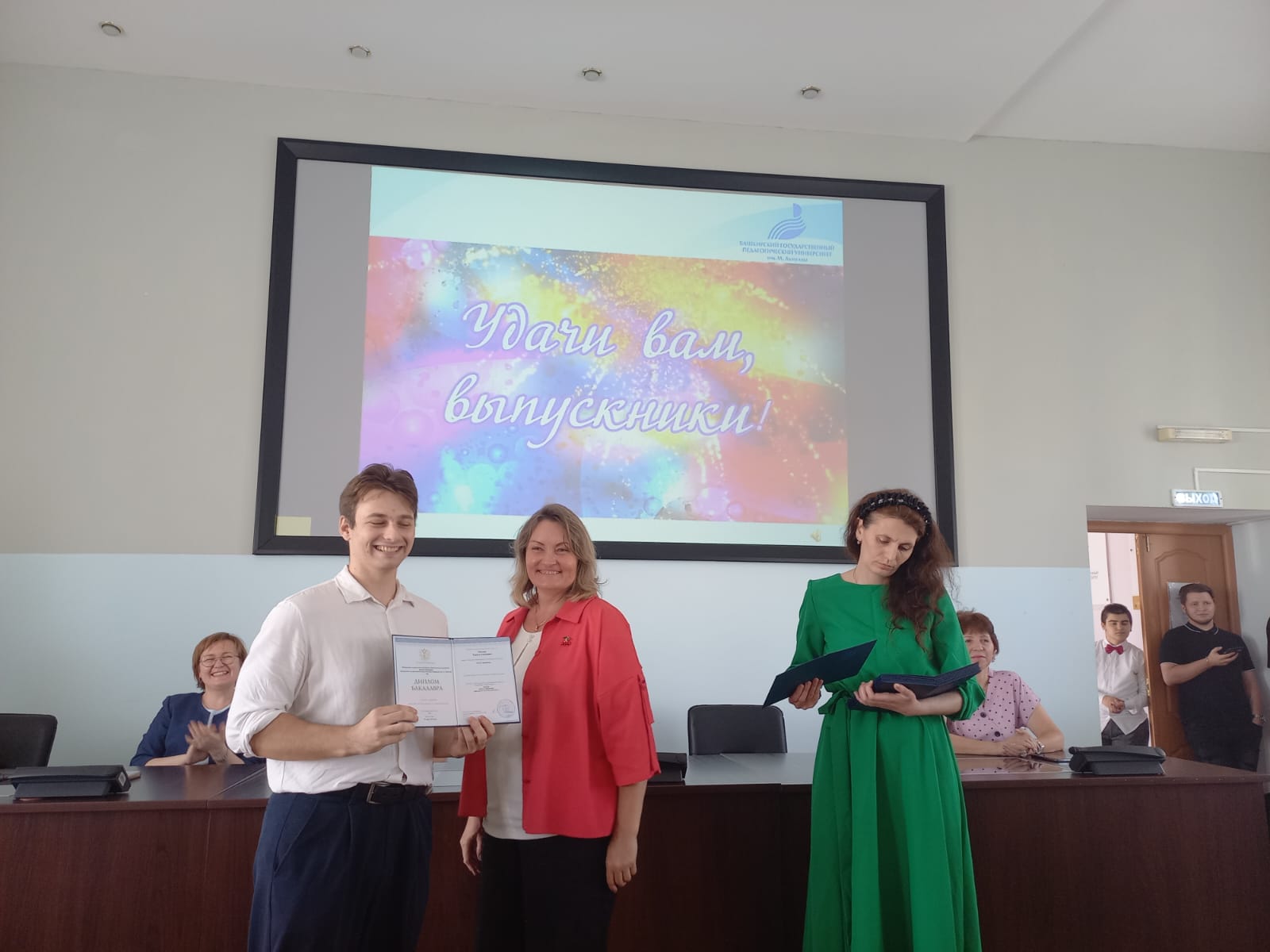 Уважаемые бакалавры, вот вы и держите в руках заветный диплом. От всего сердца поздравляем вас с окончанием обучения в  Башкирском государственном педагогическом университете им. М. Акмуллы! Желания и стремления вашего поколения определяют будущее России, облик современного общества, в котором нам предстоит жить. Не бойтесь трудностей, уверенно преодолевайте их и покоряйте новые высоты. Пусть ваши самые смелые планы осуществятся в реальности. Счастья вам, здоровья, благополучия и удачи!