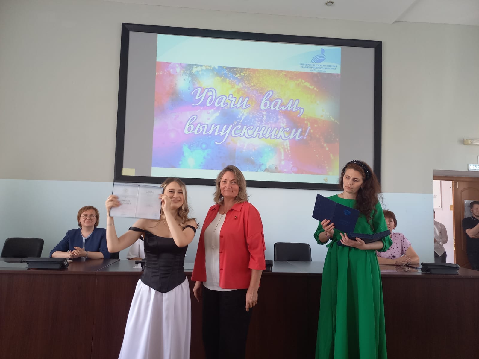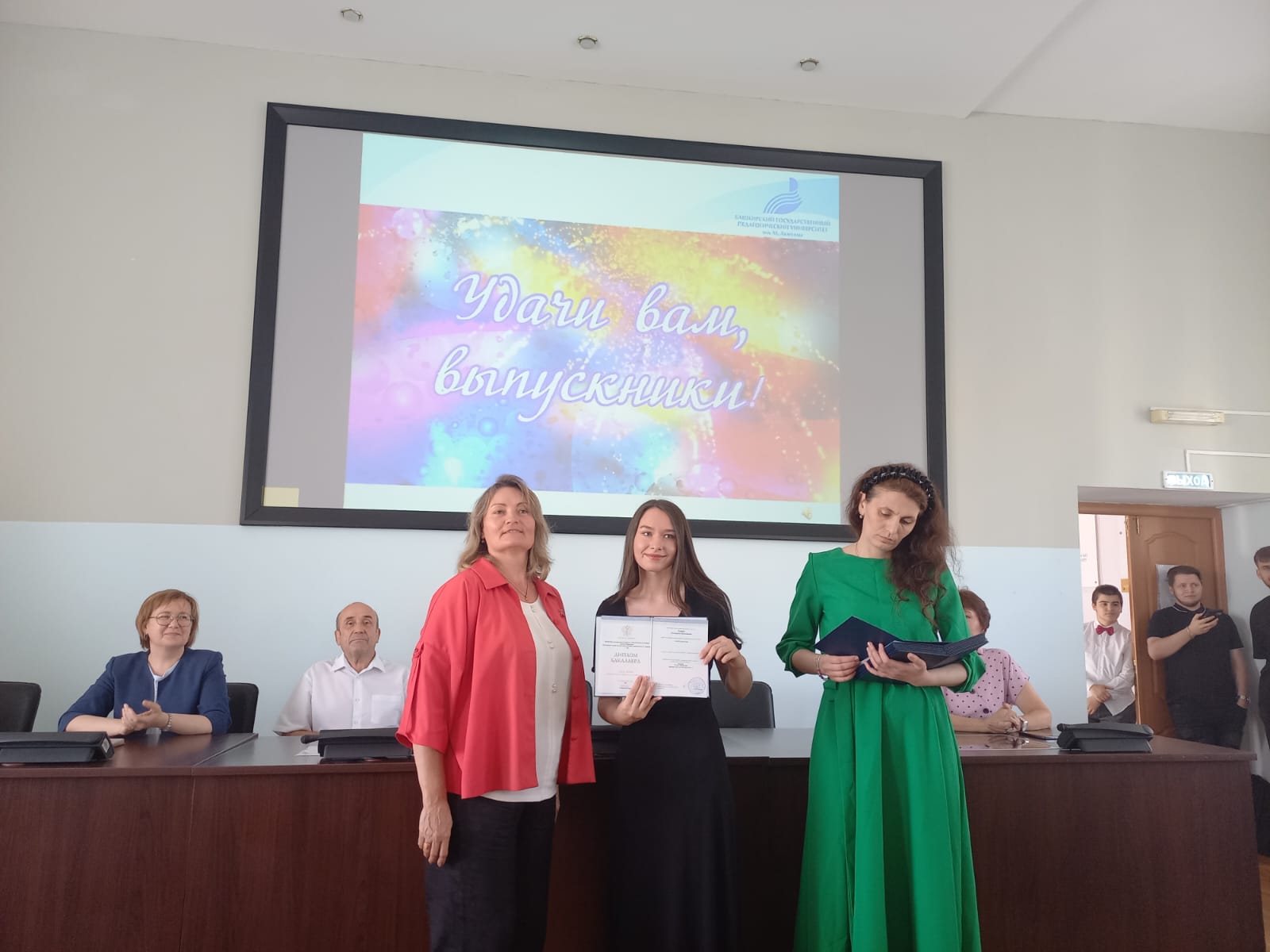 Позади осталась весёлая студенческая жизнь, наполненная радостью открытий и незабываемых встреч. Впереди – время больших свершений, начало серьёзного профессионального пути. Многих сегодняшних выпускников ждет работа в системе образования Республики Башкортостан. Мы надеемся,  то лучшее, что было получено в стенах университета, вы передадите своим ученикам и добьётесь значительных успехов в образовательной деятельности. Кто-то выберет иную сферу для реализации собственного потенциала, но, несомненно, каждого выпускника ждет большое будущее.