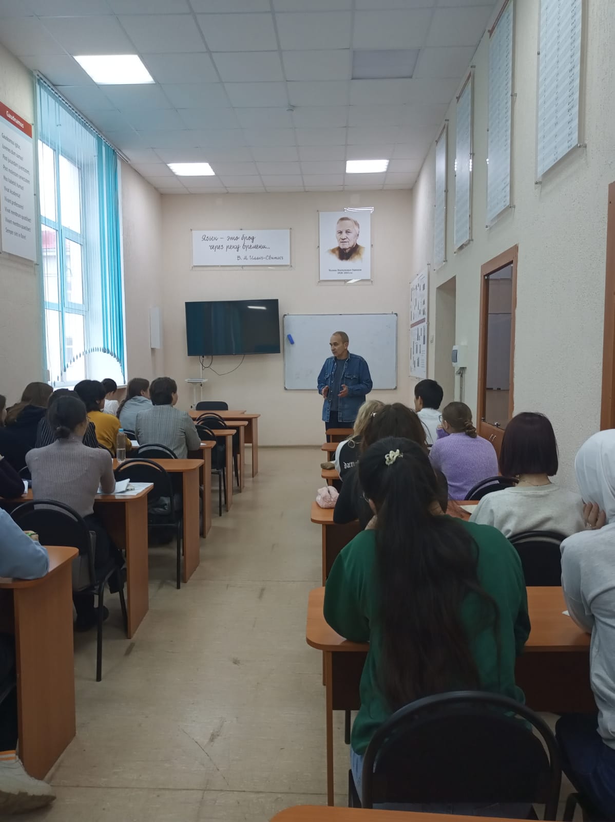 31 октября 2024 года в 303 аудитории 3 учебного корпусе состоялась встреча студентов-филологов 1 и 2 курсов направления «Педагогическое образование», профиля «Русский язык и литературы» и «Родной (татарский) язык и литература» с поэтом, прозаиком, публицистом, членом Союза писателей России, кандидатом филологических наук, литературоведом, известным аксаковедом Владимиром Угрюмовым. Она была организована руководителем литературного студенческого объединения Акмуллинского университета доцентом кафедры русской литературы И.О. Прокофьевой.
