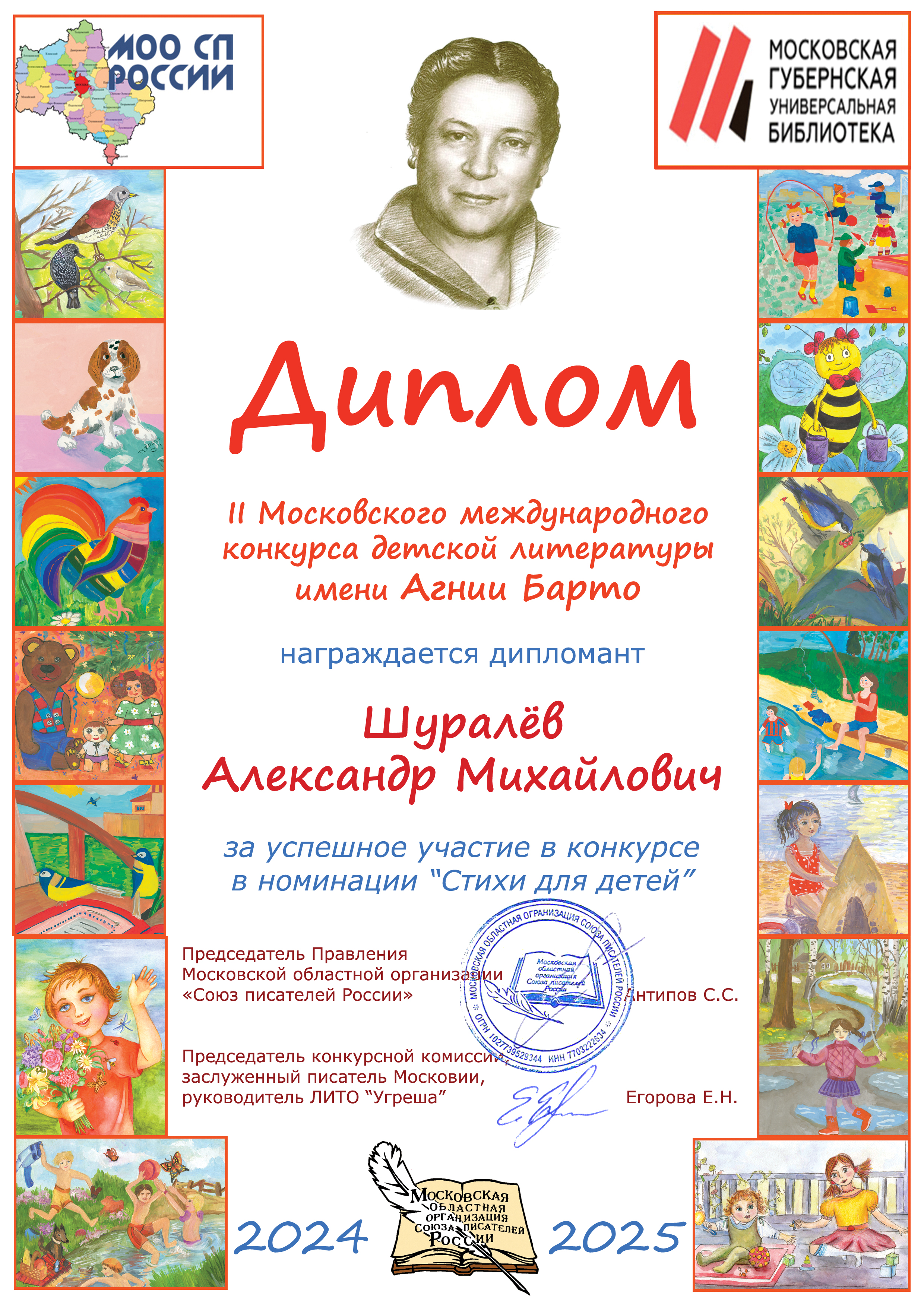 Профессор А.М. Шуралёв стал дипломантом Международного конкурса имени Агнии Барто