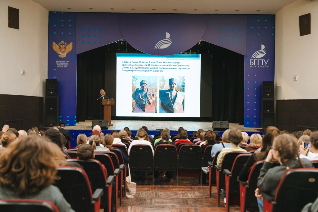 В Акмуллинском университете для ребят прошла научно-просветительская лекция о командире 112-ой Башкирской кавалерийской дивизии генерал-майоре Минигали Шаймуратове, посвященная 80-летию Победы в Великой Отечественной войне. Ее прочитал Рамиль Рахимов, руководитель регионального отделения Российского военно-исторического общества, кандидат исторических наук. Рамиль Насибуллович рассказал о мемориализации легендарного комдива, как и где организовывались мероприятия, посвященные сохранению памяти о героическом подвиге М.М. Шаймуратова.