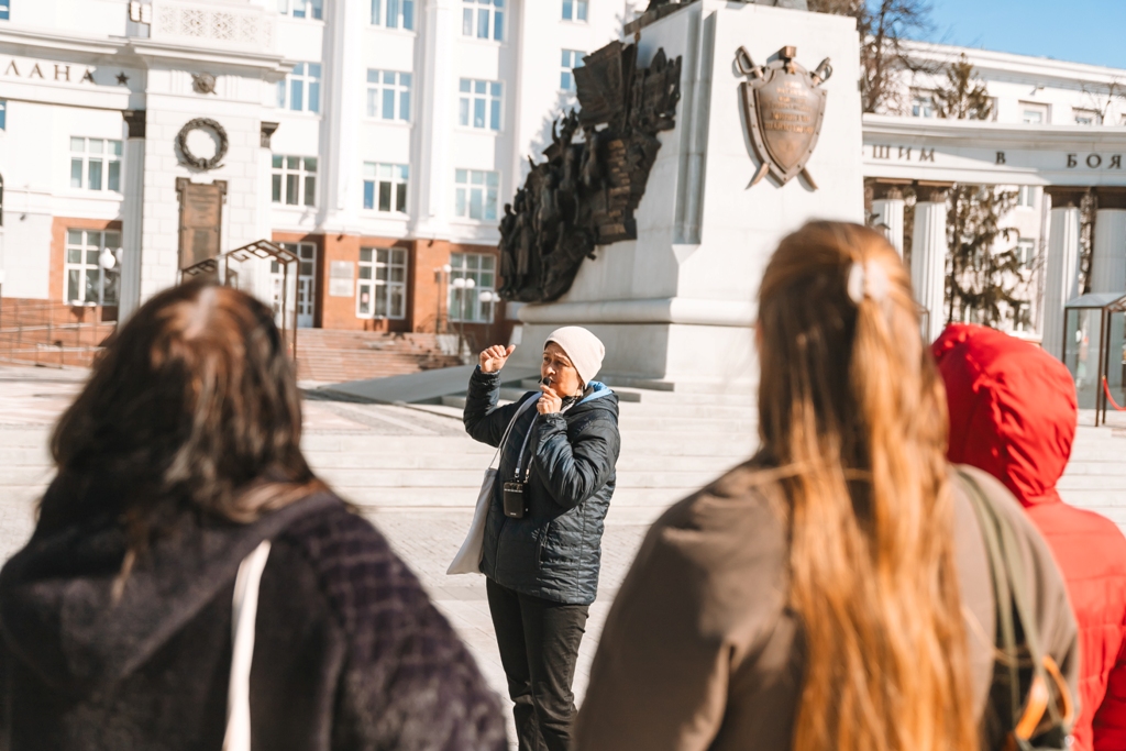 После лекции школьники отправились на экскурсию по Уфе. В сопровождении гидов они посетили знаковые места города – Советскую площадь и памятник Минигали Шаймуратову, Монумент Дружбы, стелу «Уфа – город трудовой доблести», памятник национальному герою Салавату Юлаеву,  прошли по набережной реки Белой.