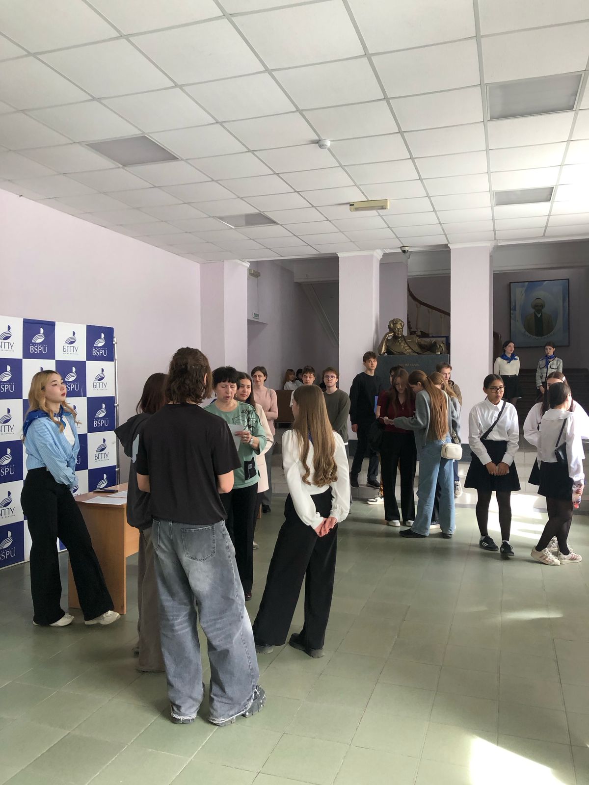 Члены кафедры английского языка (зав. кафедрой Раиса Иксанова, доценты Наиля Гумерова, Айгуль Даутова, Наталья Семенова, ст. преподаватель  Надежда Баранова, преподаватель Камила Тимирящева, лаборант Марина Иванова) постарались создать участникам пробного экзамена все условия для того, чтобы школьники работали в комфортной обстановке, при этом почувствовали серьезность и ответственность за выполняемые задания. Отлично проявили себя и студенты групп ПОАЯ_ФЯ-11-24, ПОАЯ_НЯ-11-24, выступившие в качестве волонтеров – организаторов письменной и устной частей экзамена. Четкие и слаженные действия всей команды способствовали успешному проведению трехдневного мероприятия.