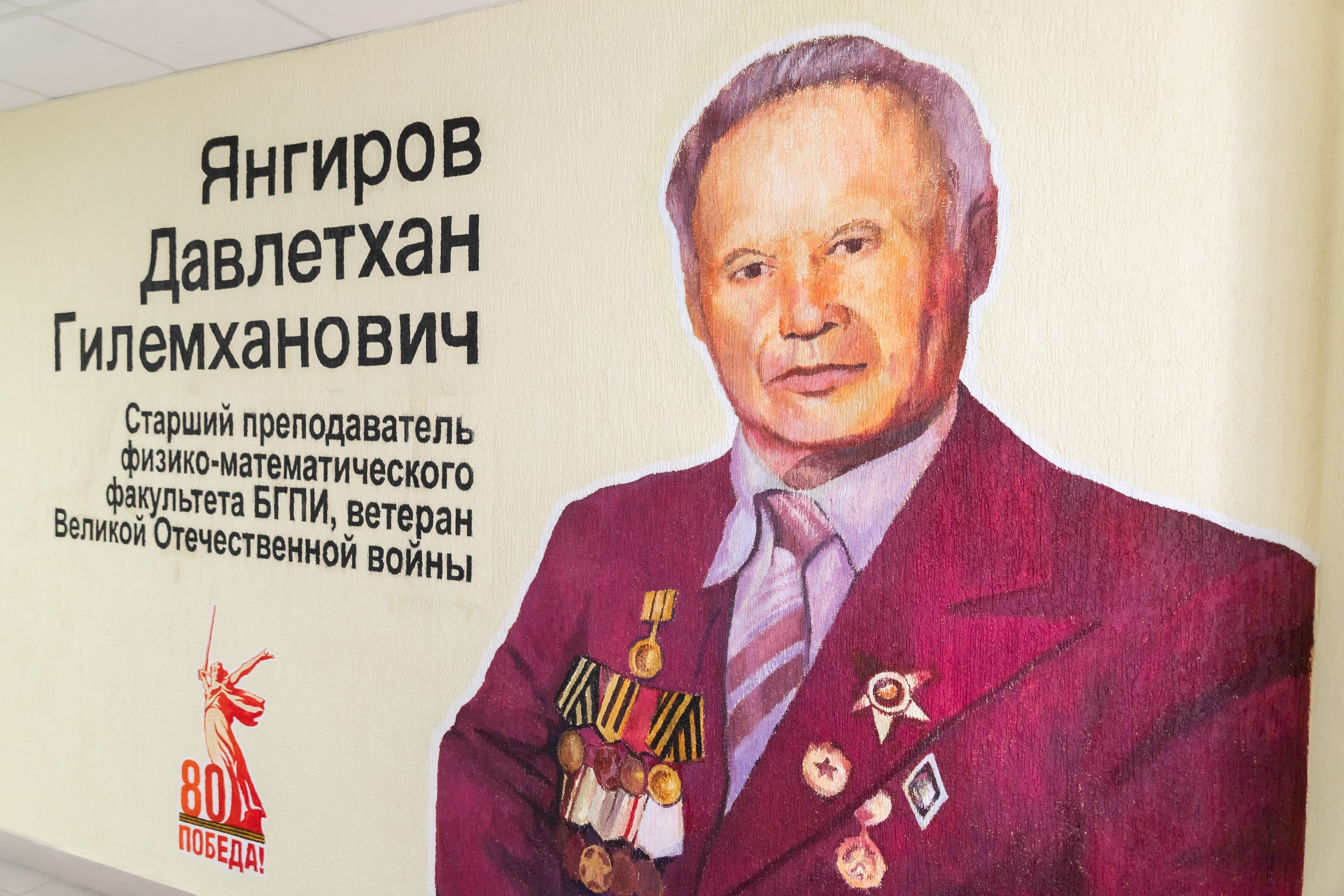 И в Институте физики, математики, цифровых и нанотехнологий теперь есть мурал, посвященный Давлетхану Гилемхановичу Янгирову. Давлетхан Гилемханович работал старшим преподавателем физико-математического факультета Башгоспедуниверситета. Он воевал в составе 3-го Белорусского фронта, был участником боев в  Восточной Пруссии.