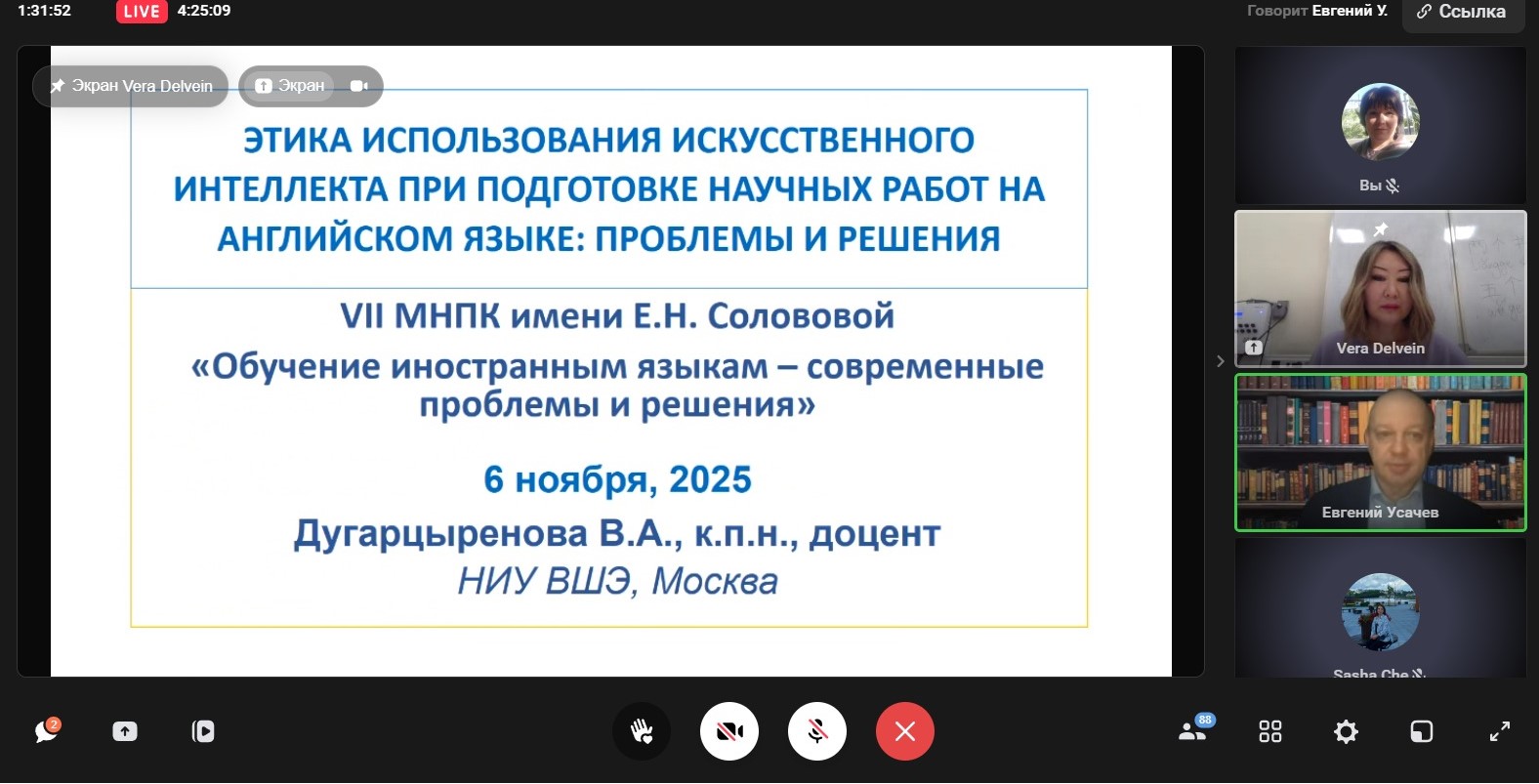 Участие в VII Международной научно-практической конференции им. Е.Н. Солововой «Обучение иностранным языкам – современные проблемы и решения»