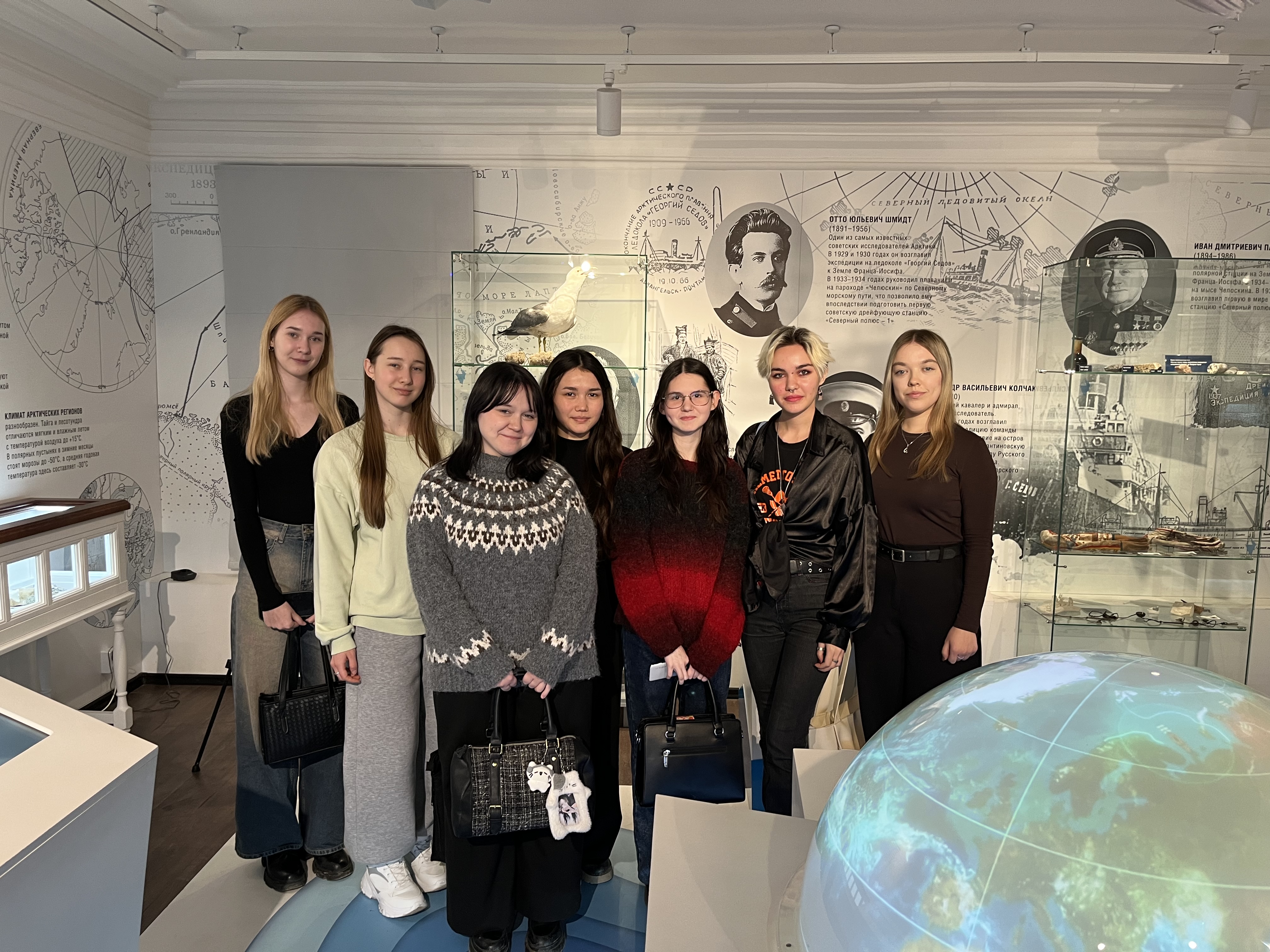 04 декабря 2025 года студенты 1 курса, обучающиеся по направлению 45.03.02 Лингвистика, направленность «Перевод и переводоведение» (группы ЛИНПП-11-25 (п/г 1) и ЛИНПП-12-25 (п/г 2)), под руководством старшего преподавателя кафедры межкультурной коммуникации и перевода В.И. Лившиц и ассистента Н.Е. Мурзанаевой посетили Музей полярников им. В.И. Альбанова. Там они прослушали лекцию известного уфимского ученого-мифолога, педагога, доцента УУНиТ, писателя Александра Сергеевича Иликаева «Мифы Севера: от Скандинавии до Чукотки».