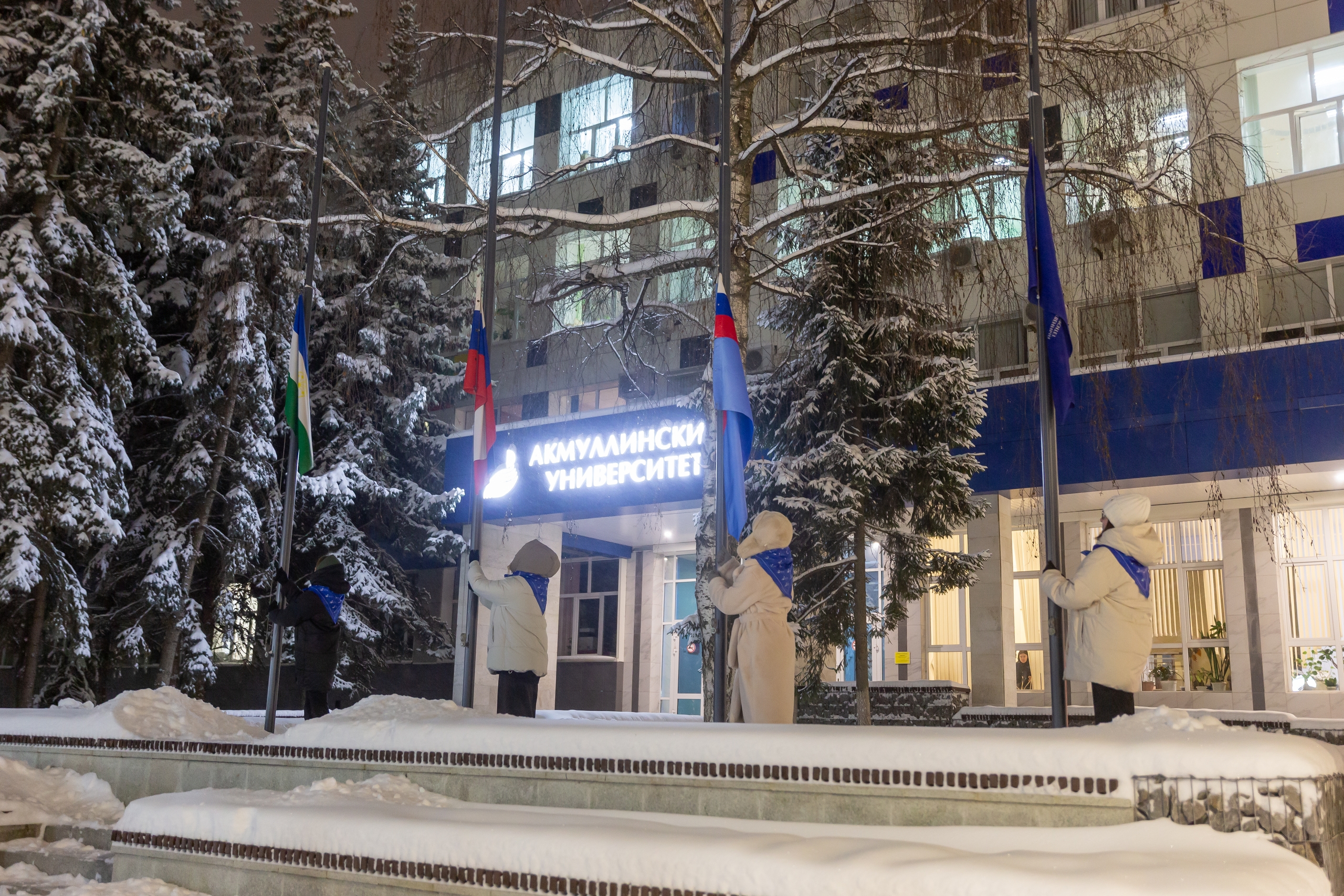 Флаги перед Акмуллинским университетом подняли студенты ИФОМК