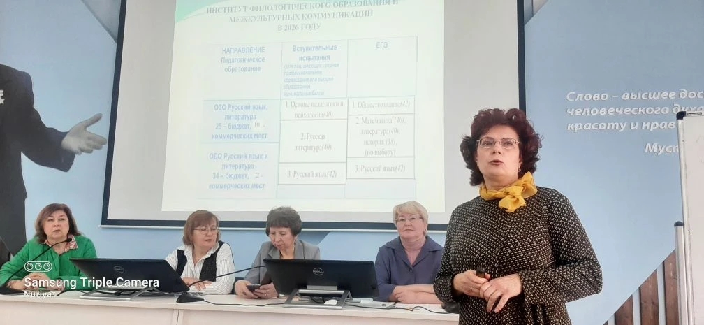 28 февраля 2026 года в Институте филологического образования и межкультурных коммуникаций был проведен День открытых дверей для обучающихся средних общеобразовательных школ, студентов колледжей, а также родителей будущих студентов Акмуллинского университета. В рамках встречи прошли презентации основных профессиональных образовательных программ, встреча с директором и профессорско-преподавательским составом института. В своем приветственном слове директор института Х.Х. Галимова рассказала о филологическом образовании, с правилами приемной кампании 2026 года. Заведущие кафедрами английского языка Р.М. Иксанова,  межкультурной коммуникации и перевода Юсупова Ю.Р., русского языка, теоретической и прикладной лингвистики Г.Ф. Кудинова, русской литературы Ю.А. Шанина,  татарского языка и литературы Н.У. Халиуллина выступили с презентацией основных профессиональных образовательных программ бакалавриата, ознакомили участников встречи  со спецификой обучения в ИФОМК, с учебной и внеучебной деятельностью студентов нашего университета.