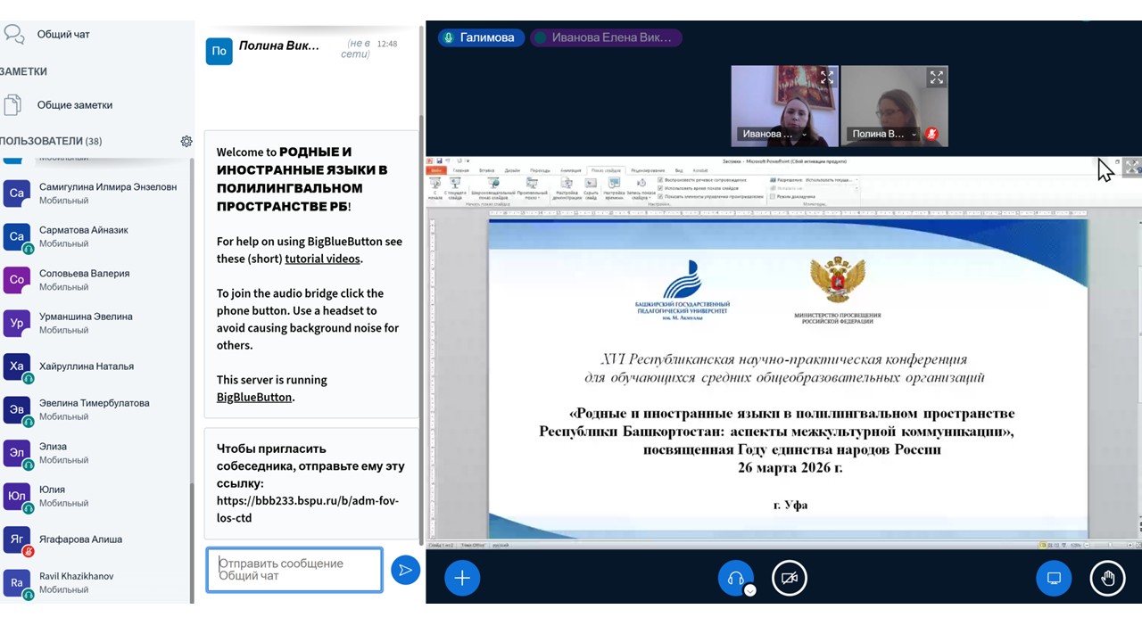 26 марта 2026 года в дистанционном формате состоялась XVI Республиканская научно-практическая конференция для учащихся средних общеобразовательных организаций. Мероприятие, организованное Институтом филологического образования и межкультурных коммуникаций БГПУ им. М. Акмуллы, вновь подтвердило высокий интерес школьников к вопросам языка, перевода и межкультурной коммуникации.