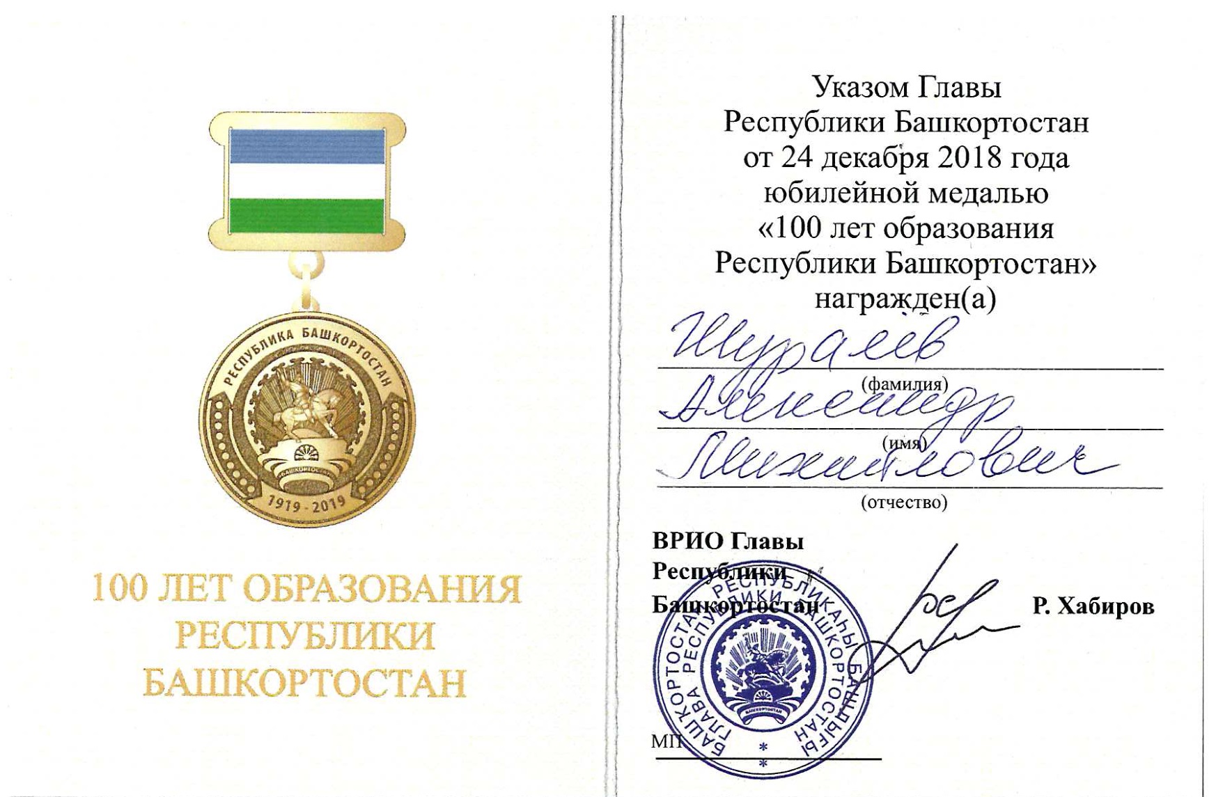 Указом Главы Республики Башкортостан юбилейной медалью «100 лет образования Республики Башкортостан» за значительный вклад в становление и развитие Республики Башкортостан в области образования и культуры награждён профессор кафедры русской литературы БГПУ им. М. Акмуллы, доктор педагогических наук, член Союза писателей РФ и РБ Александр Михайлович Шуралёв.