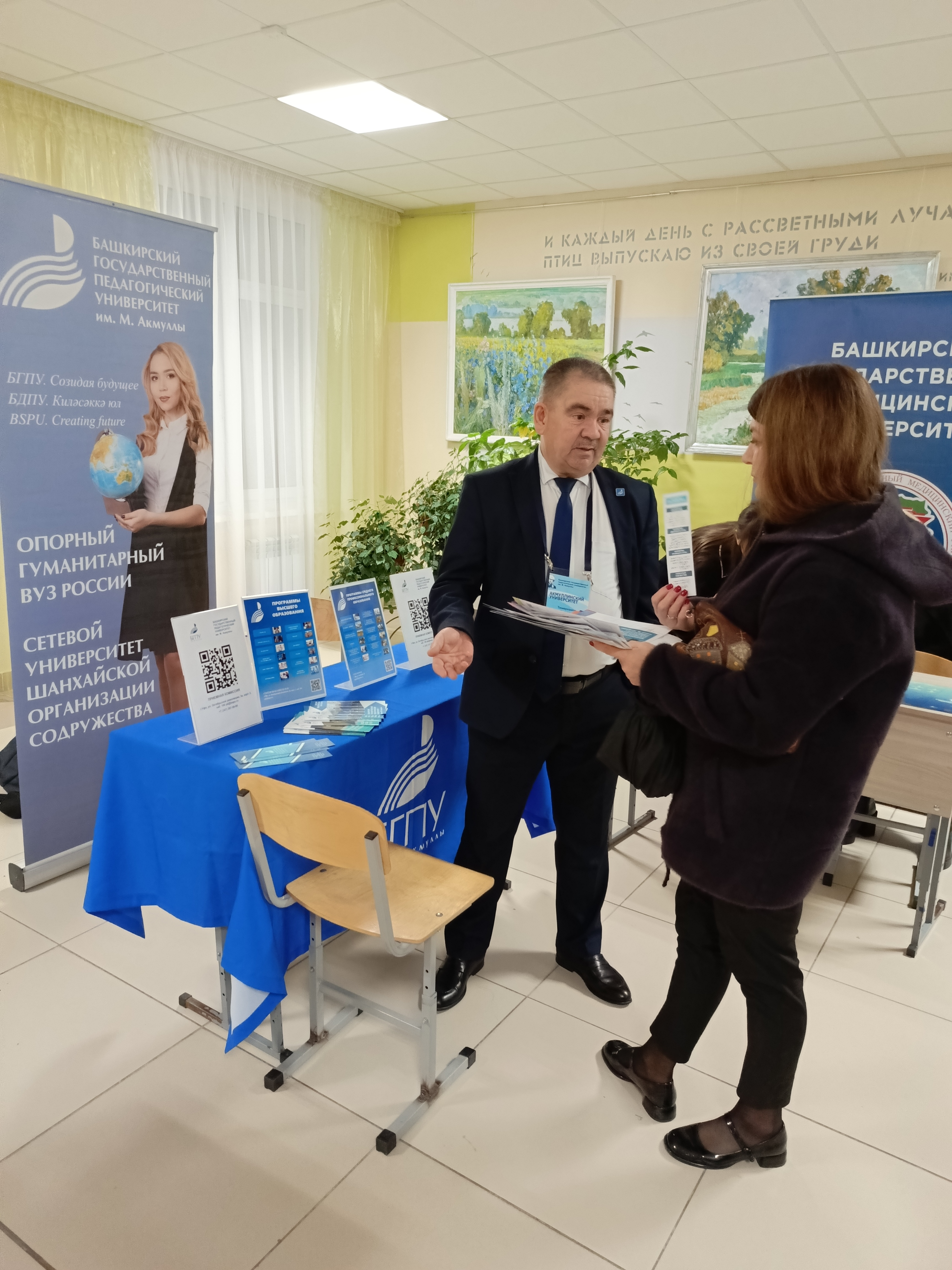 24 октября 2024 года директор профориентационного центра БГПУ им. М. Акмуллы Фиданис Тимерханов  и заведующая кафедрой английского языка Раиса Иксанова приняли участие в проведении собрания с родителями выпускников школ Ленинского района г. Уфы. Во встрече, состоявшейся на базе МАОУ «Лицей №1», представители ведущих вузов Республики Башкортостан рассказали об условиях обучения в своих университетах, об особенностях приемной кампании. Участники собрания с вниманием и интересом выслушали экспресс-презентации Башкирского государственного аграрного университета, Уфимского юридического института МВД России, Уфимского государственного института искусств им. З. Исмагилова, Башкирской академии государственной службы и управления при Главе Республики Башкортостан, Уфимского университета науки и технологий, Уфимского государственного нефтяного технического университета, Башкирского государственного медицинского университета, Уфимского филиала Финансового университета при Правительстве Российской Федерации. Раиса Иксанова и Фиданис Тимерханов представили Акмуллинский университет как динамично развивающийся вуз, занимающий передовые позиции в системе образования, ответили на вопросы, интересующие будущих абитуриентов и их родителей.