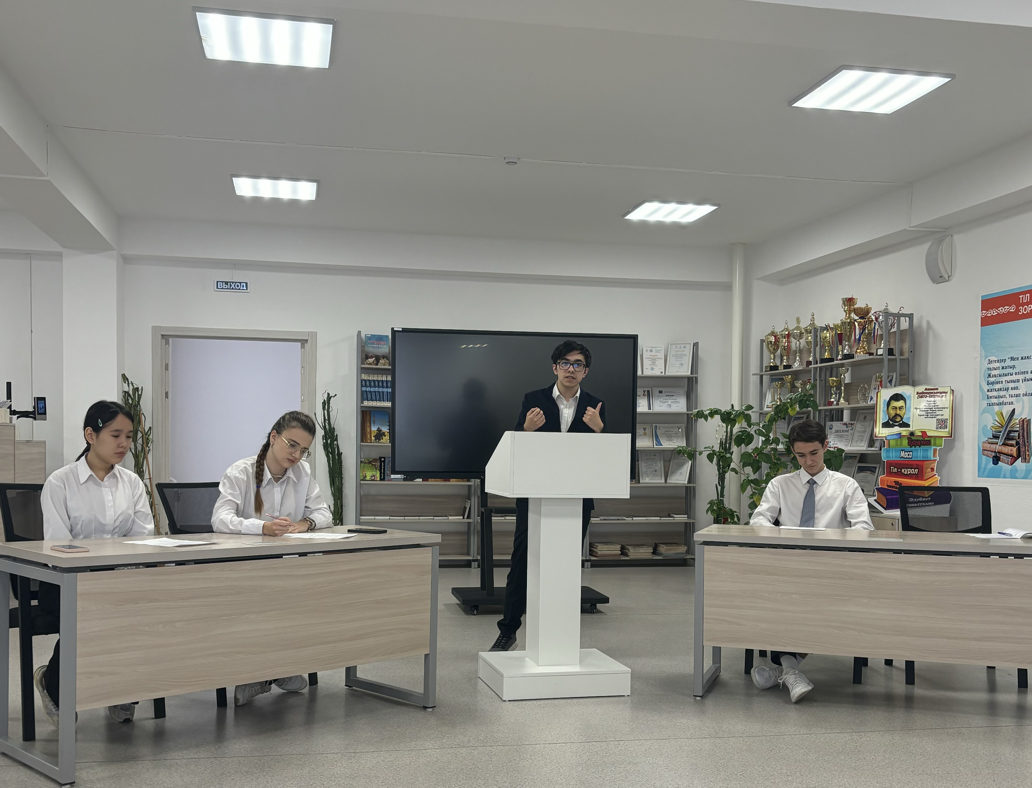 Учащиеся 11 лингвистического класса Гимназии № 5 показали высокий уровень сформированности иноязычной коммуникативной компетенции на уроке английского языка и в дебатах на английском языке на тему «Трёхъязычное образование в Казахстане».