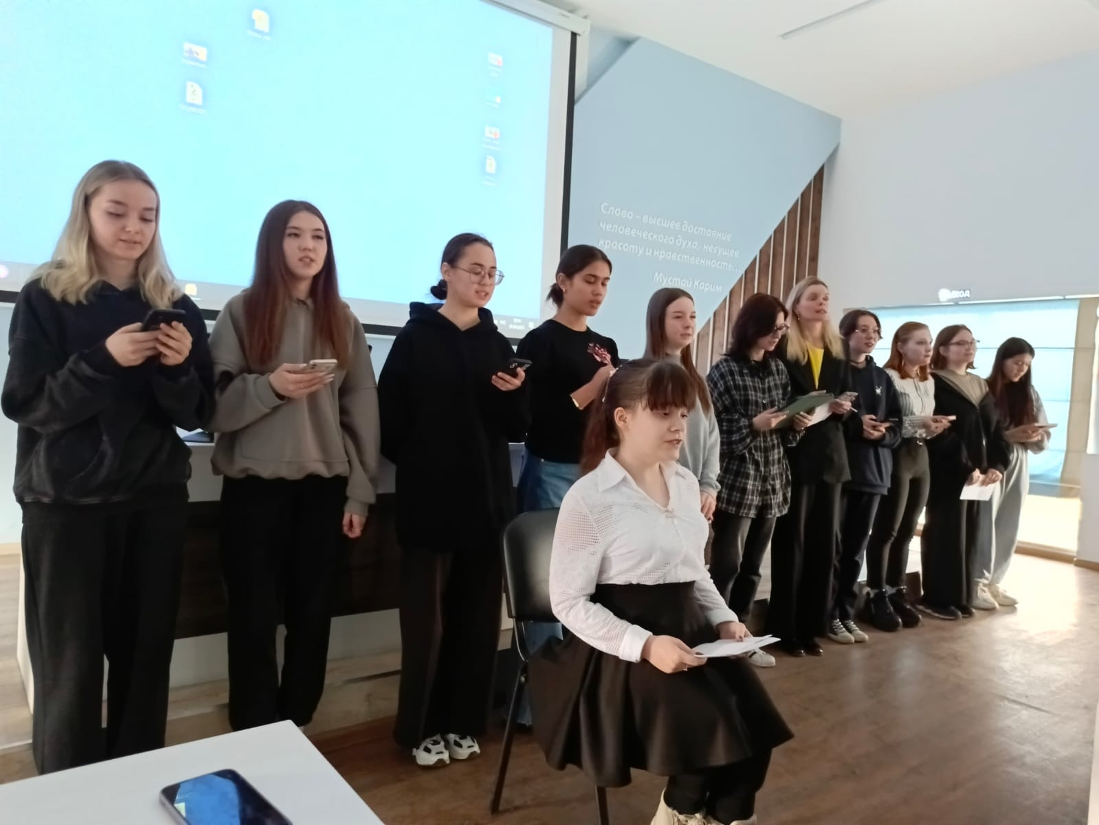 Особая роль в презентации была отведена групповому исполнению песен военных лет на английском языке. Прозвучали мелодии знаменитых «Катюши», «Смуглянки», песен «Темная ночь», «Священная война». Особый отклик вызвала современная песня «И все о той весне».