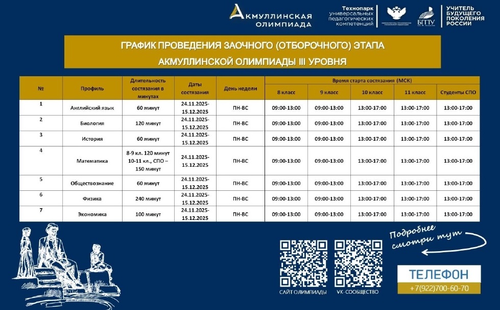 Отборочный этап «Акмуллинской олимпиады» в этом году начнется 15 ноября и продлится до 9 февраля 2026 года.