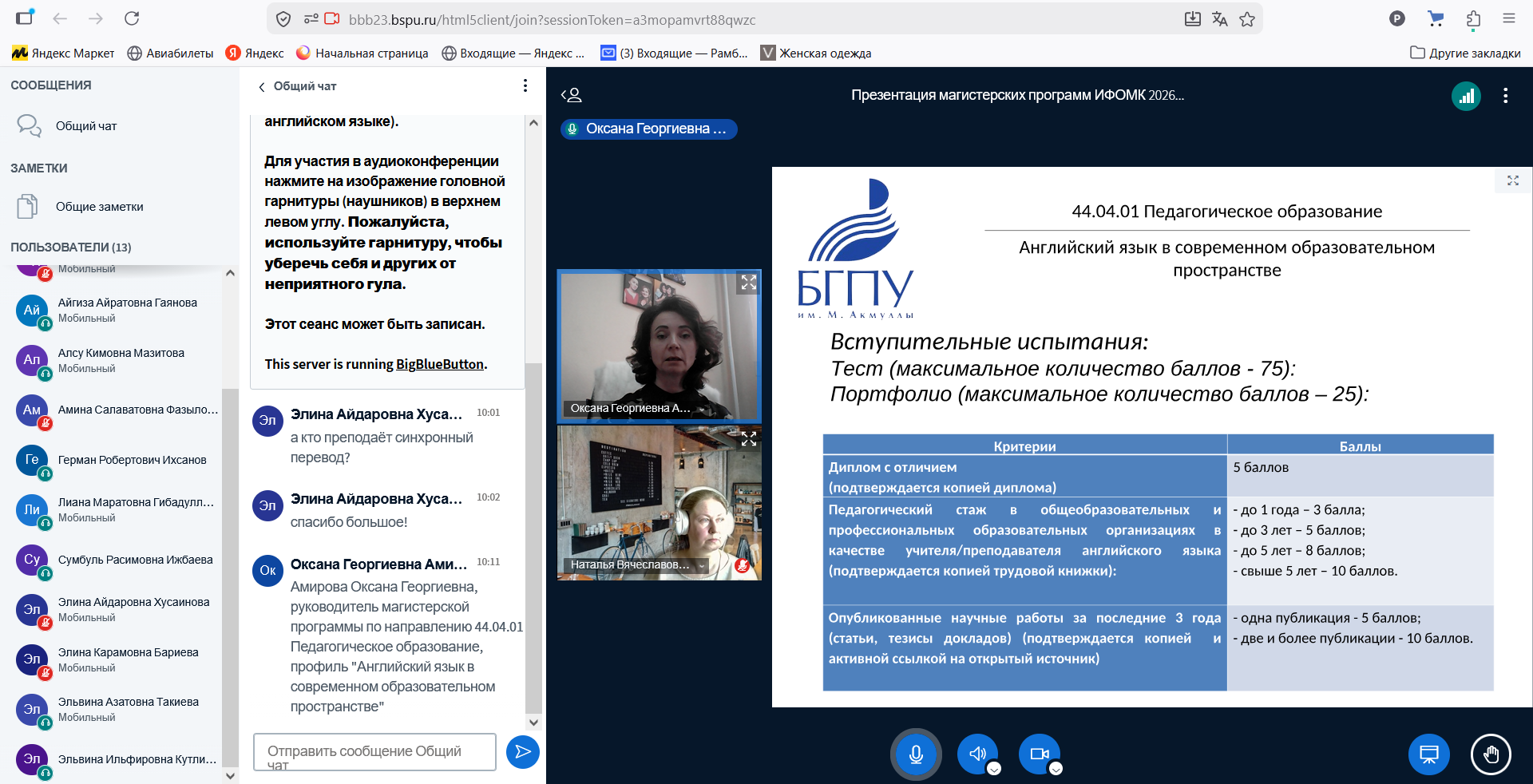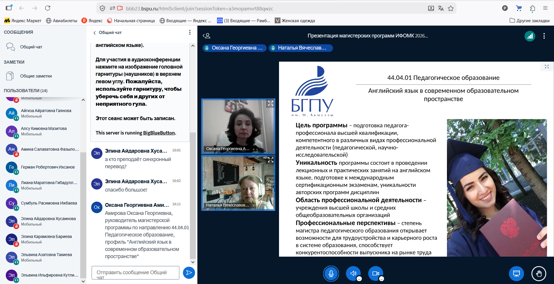 На онлайн встрече присутствовали студенты как педагогического направления, так и лингвистического направления, завершающие программу бакалавриата по следующим профилям: Английский язык и немецкий язык, Английский язык и французский язык, Родной (татарский) язык, литература и английский язык, Обществознание и английский язык, Английский язык и русский язык как иностранный, Перевод и переводоведение.