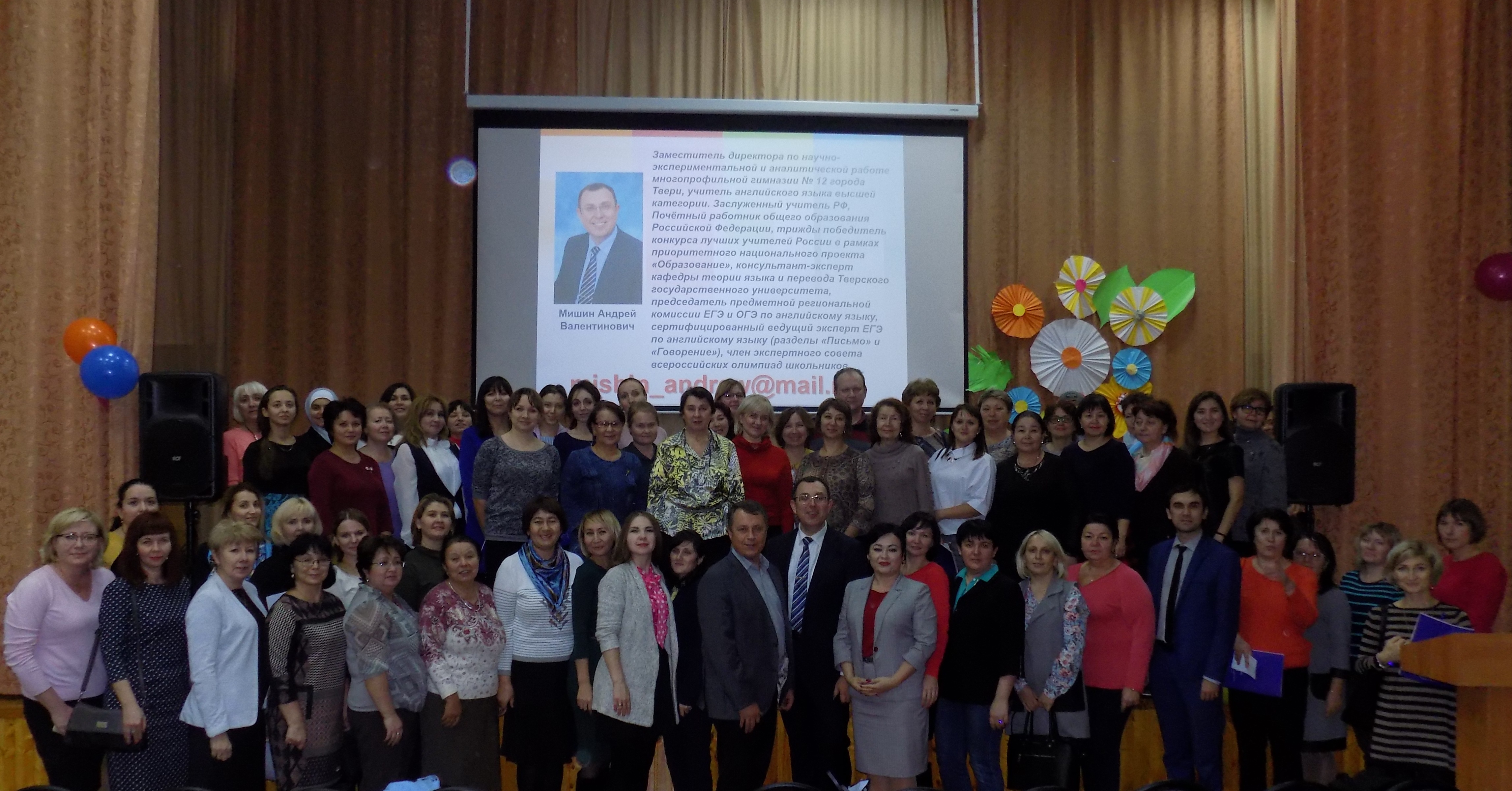 24 октября 2018 г. состоялась встреча учителей иностранных языков г. Уфы с А.В. Мишиным, заслуженным учителем РФ, трижды победителем конкурса луших учителей России в рамках приоритетного национального проекта «Образование», сертифицированным ведущим экспертом ЕГЭ по английскому языку, членом экспертного совета всероссийских олимпиад школьников. Главной темой семинара стало обучение письменной части ЕГЭ. Андрей Валентинович как автор многочисленных публикаций и сборников по подготовке обучающихся к выполнению заданий итоговой аттестации по английскому языку поделился своими профессиональными секретами и наработками, приемами  повышения мотивации школьников на уроках иностранного языка.