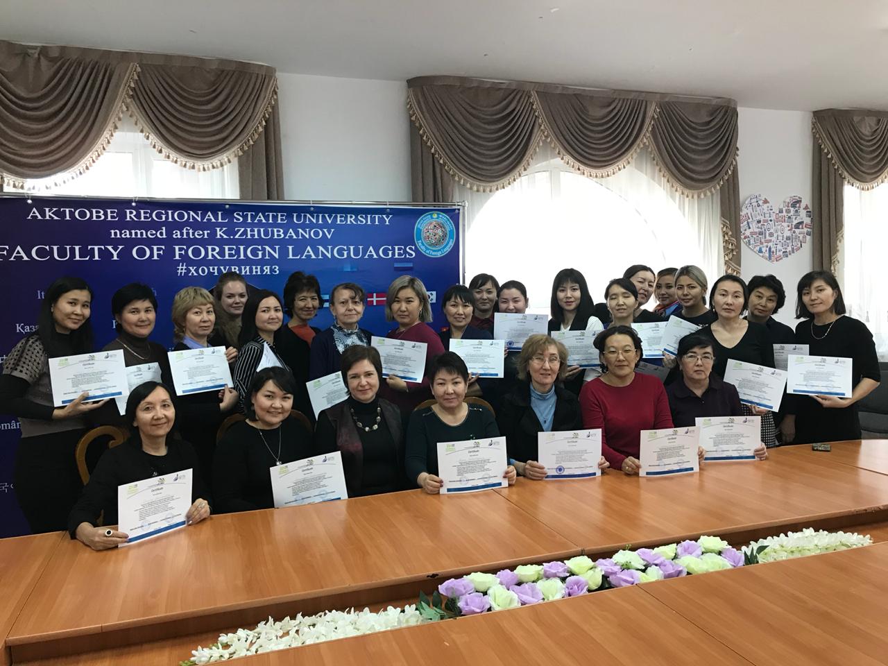 С 19 по 30 ноября 2018 г. доцент кафедры английского языка БГПУ им. М. Акмуллы  А.К. Никулина в рамках программы академической мобильности посетила Актюбинский региональный государственный университет им. К. Жубанова. В течение двух недель студенты казахстанского университета, обучающиеся по специальностям «Иностранная филология», «Переводческое дело» и «Иностранный язык: два иностранных языка», изучали разработанный А.К. Никулиной спецкурс «Британская история как источник лингвострановедческой информации». Спецкурс проводился на английском языке и дал возможность студентам не только глубже познакомиться с историей и культурой Великобритании, но и усвоить специфическую национально-маркированную лексику и приобрести лингвострановедческие фоновые знания, необходимые будущим специалистам в области иностранных языков.