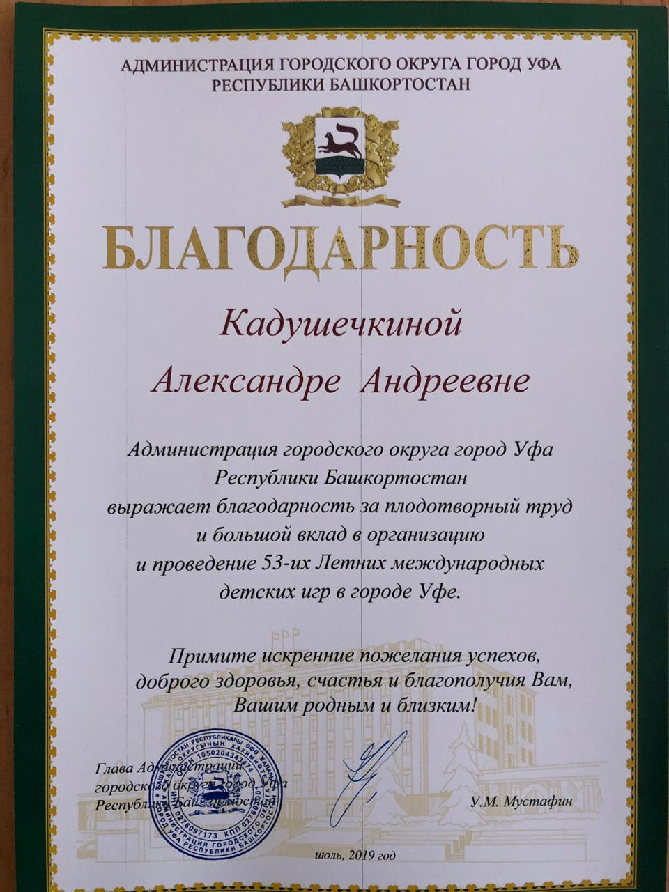 Поздравляем студентов 5 курса Института филологического образования и межкультурных коммуникаций Ермолаеву Екатерину, Кадушечкину Александру, Радышевцеву Анастасию, Таюпову Лиану с вручением благодарностей от Администрации ГО г. Уфа. Под руководством доцента кафедры английского языка Амировой О.Г. наши студенты приняли активное участие в организации и проведении 53-их Летних международных детских игр, обеспечивая лингвистическое сопровождение на высоком профессиональном уровне!