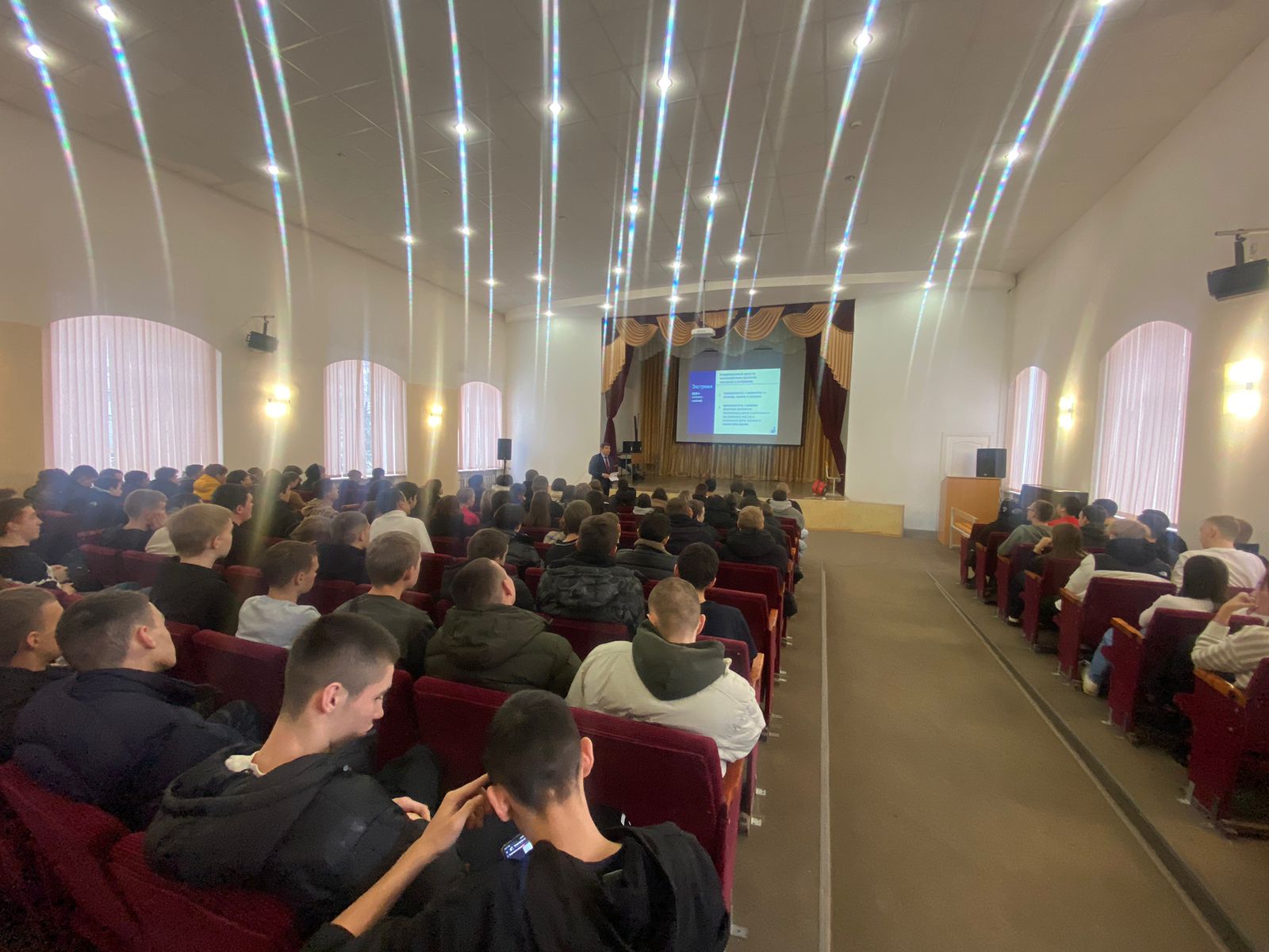 Лектор, рассказывая о конкретных статьях Уголовного кодекса России и Кодекса об административных правонарушениях России, предусматривающих ответственность за правонарушения в сфере экстремизма и терроризма, свое выступление проиллюстрировал актуальными для студентов примерами привлечения к ответственности за правонарушения в этой сфере.
