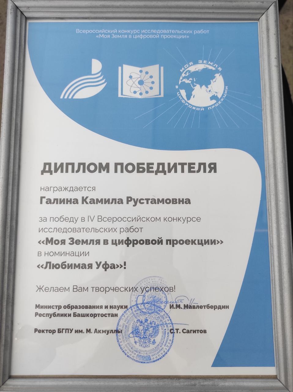 26 апреля в Институте исторического, правового и социально-гуманитарного образования Акмуллинского университета состоялась церемония награждения призеров и победителей IV Всероссийского конкурса исследовательских работ «Моя Земля в цифровой проекции»