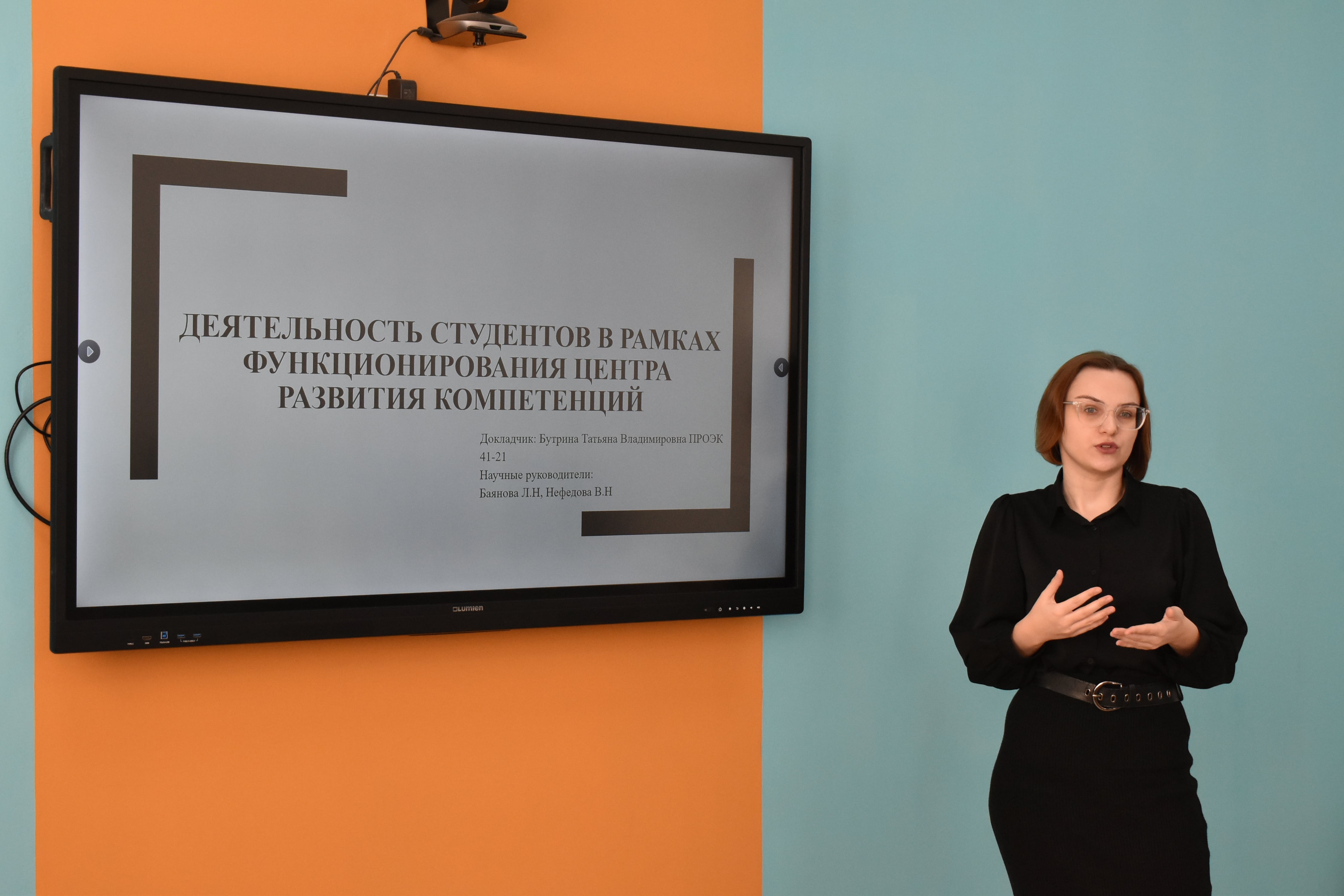 Бутрина Татьяна представила Центр развития экономических компетенций «Ключевая точка». В своем выступлении она уделила большое внимание важности участия студентов в научно-практических конференциях и научных фестивалях.