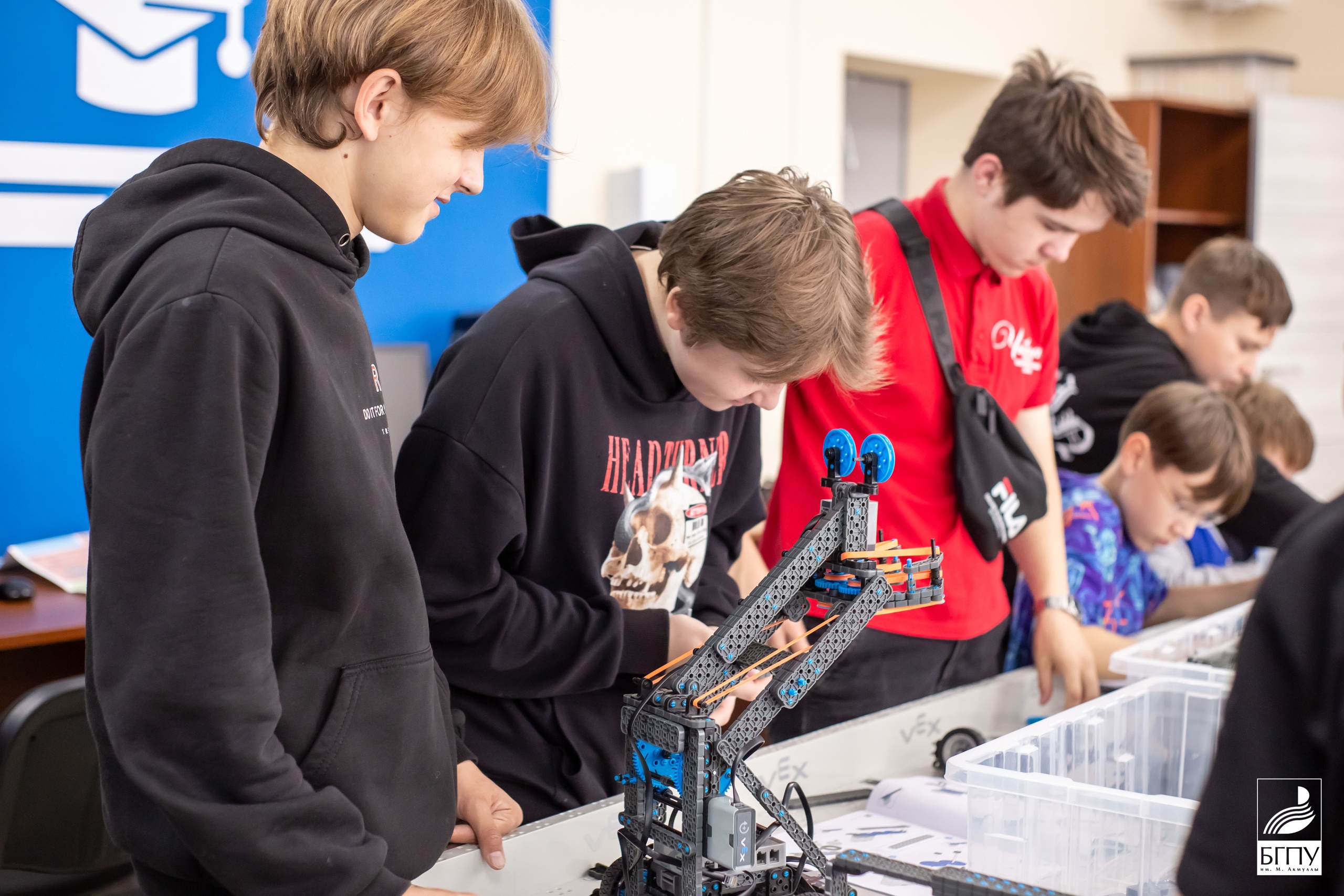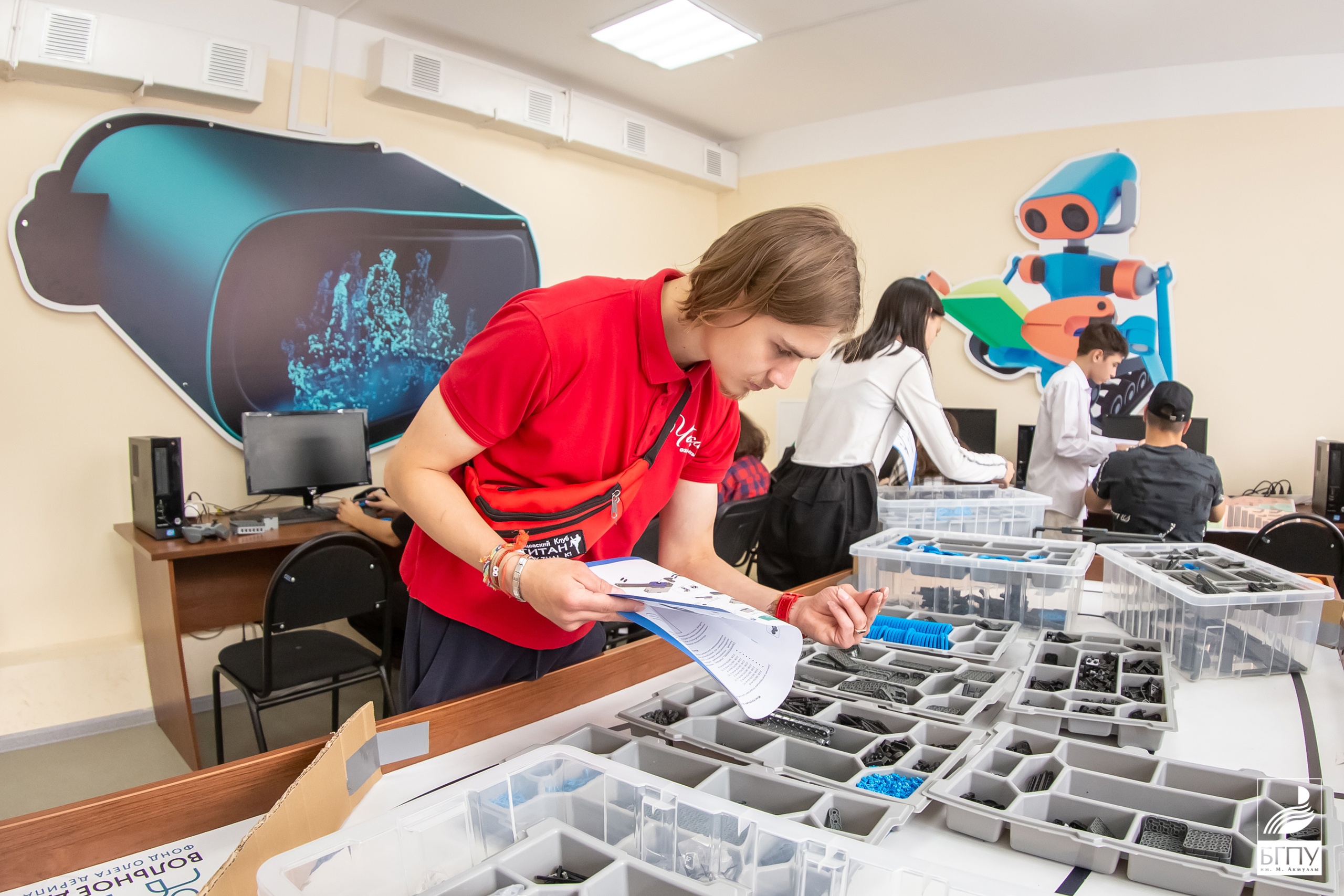 В Акмуллинском университете проходят занятия робототехникой для школьников. Их посещают ребята из детского оздоровительного лагеря «Чайка» г.Уфы.