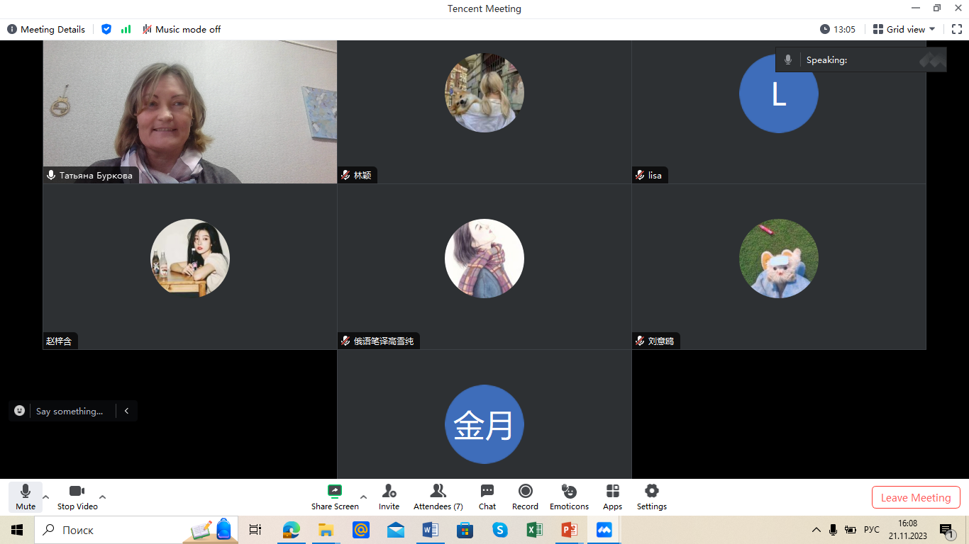 20-21 ноября 2023 года профессор БГПУ им. М. Акмуллы Буркова Татьяна Александровна прочитала лекции студентам Северо-Восточного педагогического университета (г. Чанчунь, Китай), которые в стенах своего вуза изучают русский язык как иностранный. В рамках лекций были затронуты проблемы исследования семантики лексических единиц в ракурсе их национальной специфики. Было отмечено, что единицы языка образуют лингвокультурный код – систему взаимосвязанных значений, отражающих специфические, исторически обусловленные мировосприятие и миропонимание, присущие определенному языковому сообществу.