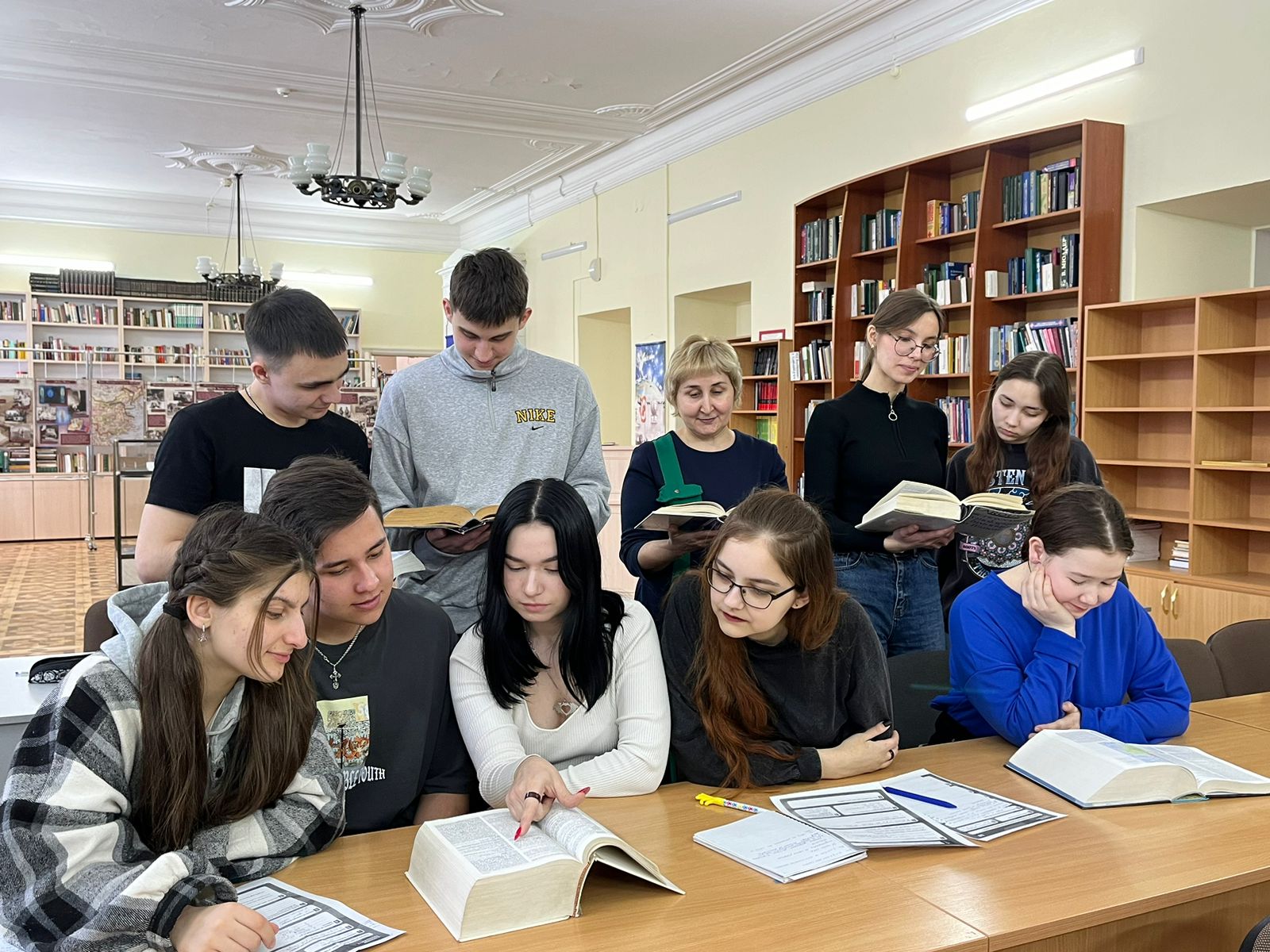15 марта доцент З.Р.Киреева провела внеурочное мероприятие «Словари – сокровищница  языка» со студентами группы ЛИНПП-22-22, изучающими французский язык в качестве второго иностранного языка. Мероприятие прошло в зале изданий на иностранных языках Национальной библиотеки им.А.-З.Валиди. Преподаватель подготовила для студентов специальные задания, при выполнении которых будущие переводчики выделяли дифференциальные признаки и функциональное значение различных типов словарей и энциклопедий, учились находить нужную информацию в каждом типе словаря. Студенты также ознакомились с фондом библиотеки, узнали о мероприятиях, которые проводятся в библиотеке (выставки, лекции).