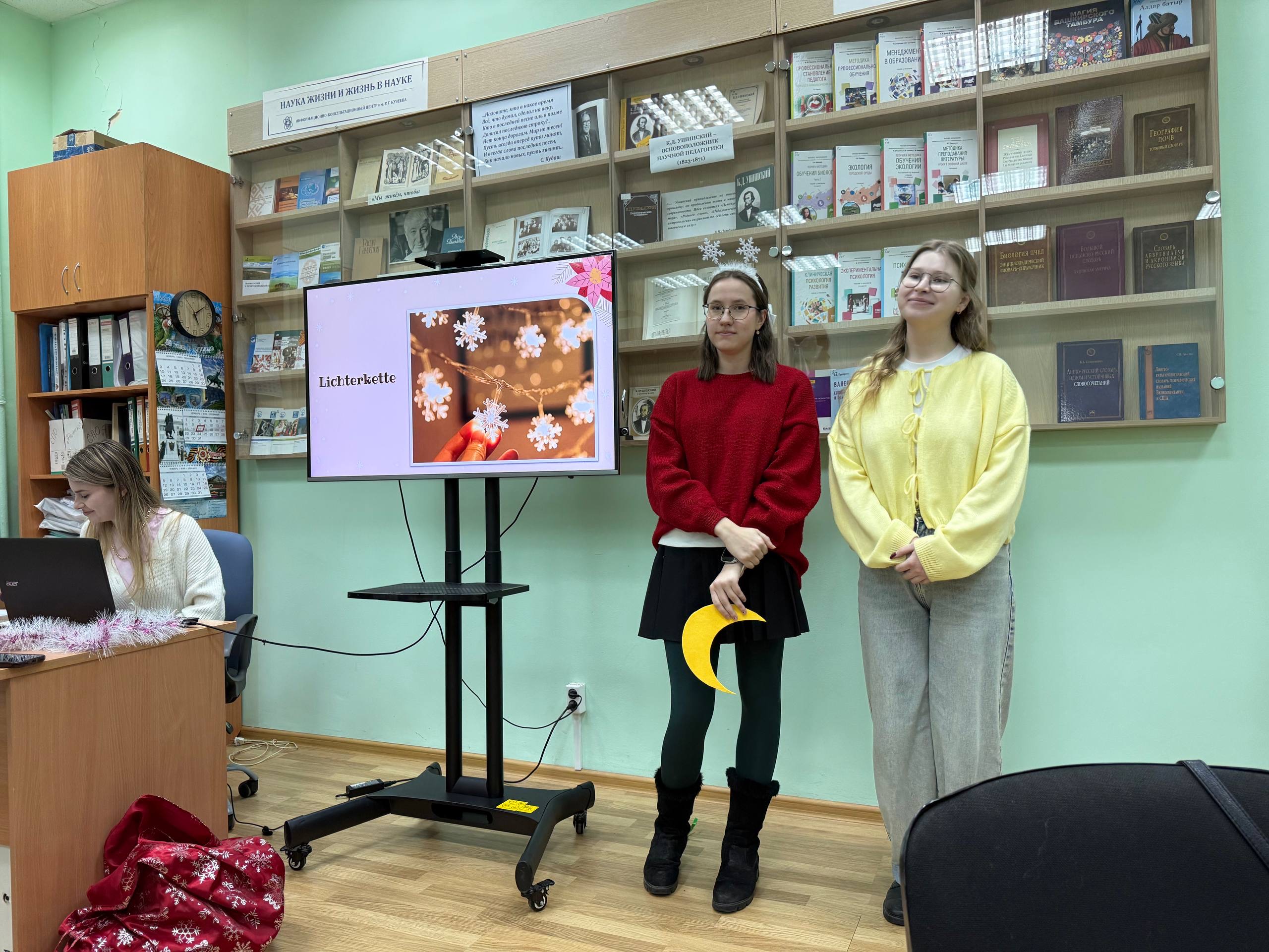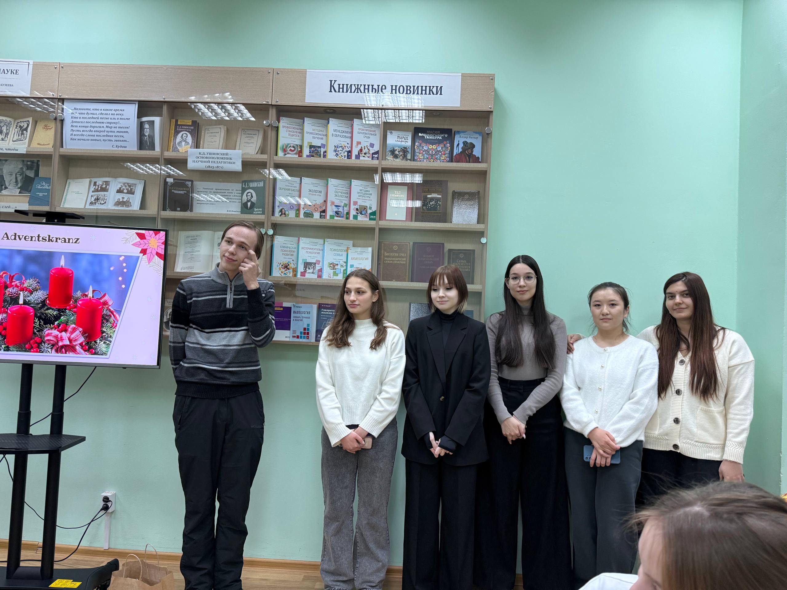 17 декабря 2025 года в Институте филологического образования и межкультурных коммуникаций прошли «Рождественские встречи». В мероприятии приняли участие студенты 1-5 курсов, изучающих немецкий язык и культуру. Студенты узнали об основных атрибутах и обычаях предрождественского времени (Advent). Праздничную атмосферу создали традиционные песни, которые можно услышать в это время на всех рождественских ярмарках немецкоязычных стран. Мероприятие, посвященное главному празднику в году в странах изучаемого языка, организуется преподавателями кафедры романо-германской филологии и методики обучения иностранным языкам Татьяной Бурковой и Гузель Галиевой. ежегодно. Оно способствует как формированию общепрофессиональных, так и специальных (социокультурной и лингвистической) компетенций студентов. Будущие учителя немецкого языка учатся организовывать мероприятия, знакомятся с методами повышения мотивации к изучению преподаваемого предмета и узнают много нового о культуре немецкоязычных стран.