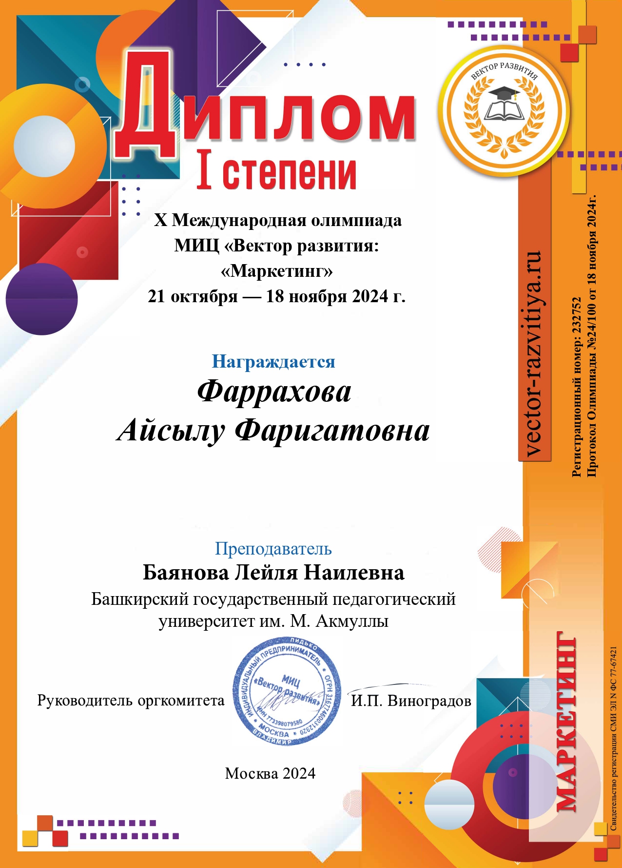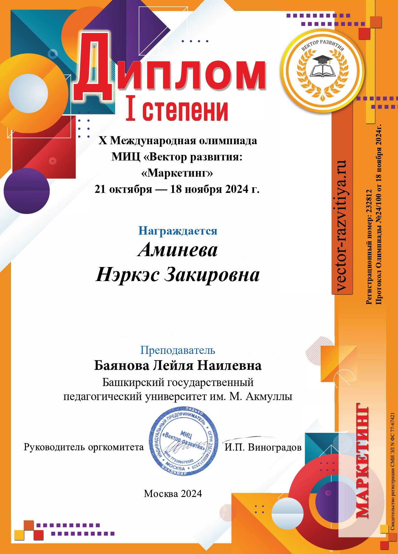 С 21 октября по 18 ноября 2024года прошла X Международная олимпиада МИЦ Вектор развития: «Маркетинг».