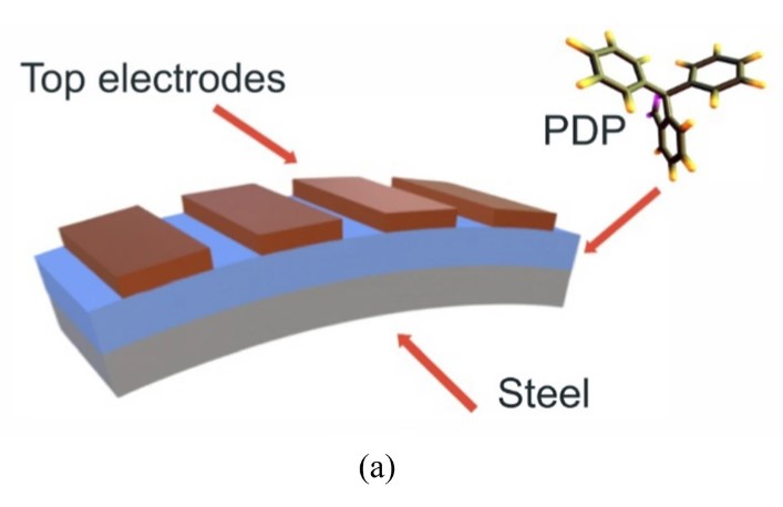Опубликована статья, подготовленная сотрудниками молодежной лаборатории о разработке сенсора деформации металлов. В тонких пленках полидифениленфталида наблюдается эффект резистивного переключения. В работе показано, что изменение потенциального барьера интерфейса полимер/металл может инициировать это переключение. Оно происходит при увеличении степени деформации металла, когда потенциальный барьер интерфейса уменьшается. Увеличение потенциального барьера интерфейса приводит к увеличению импеданса полимерной пленки. В целом, изменение импеданса коррелирует с изменением потенциального барьера интерфейса. В работе показано, как это явление может быть использовано для создания датчика деформации металла, а также устройства для неразрушающего контроля и сигнализации критического состояния металла