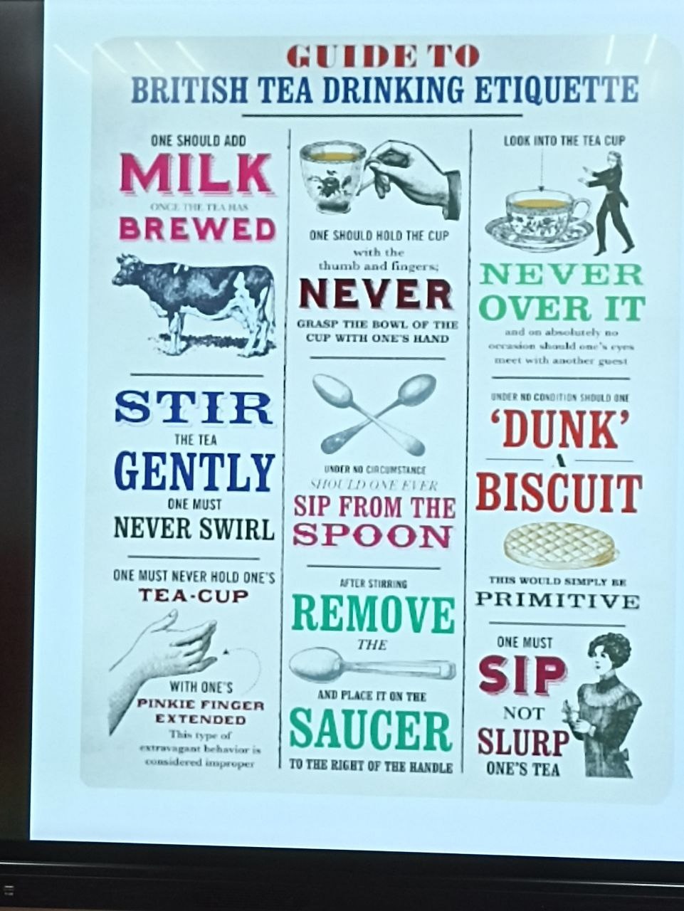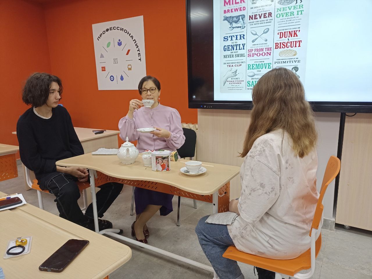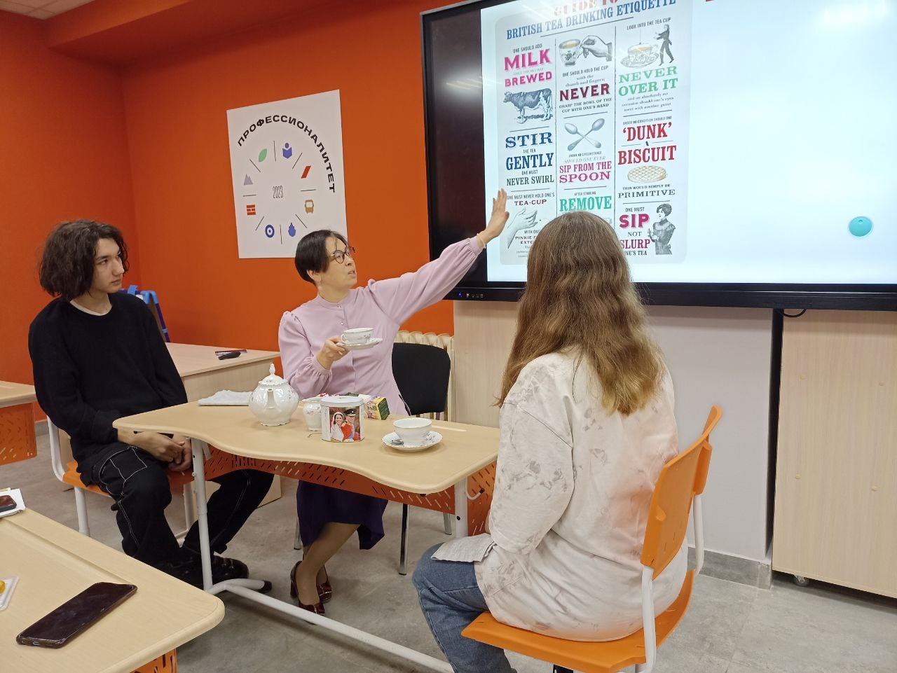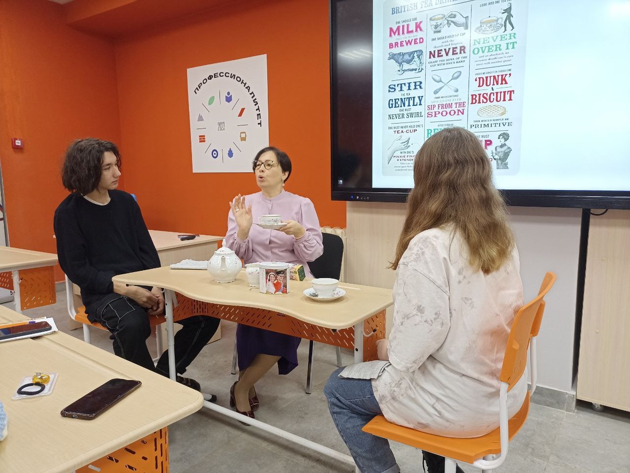 Интерактивная форма включала в себя знакомство с ритуалами и историей, особенностями и обычаями традиционного английского чаепития. В процессе взаимодействия с педагогом и однокурсниками, студенты практиковали навыки восприятия речи на слух, анализа и систематизации информации из различных видов источников: фотографий, постеров, комиксов и интеллект карт.