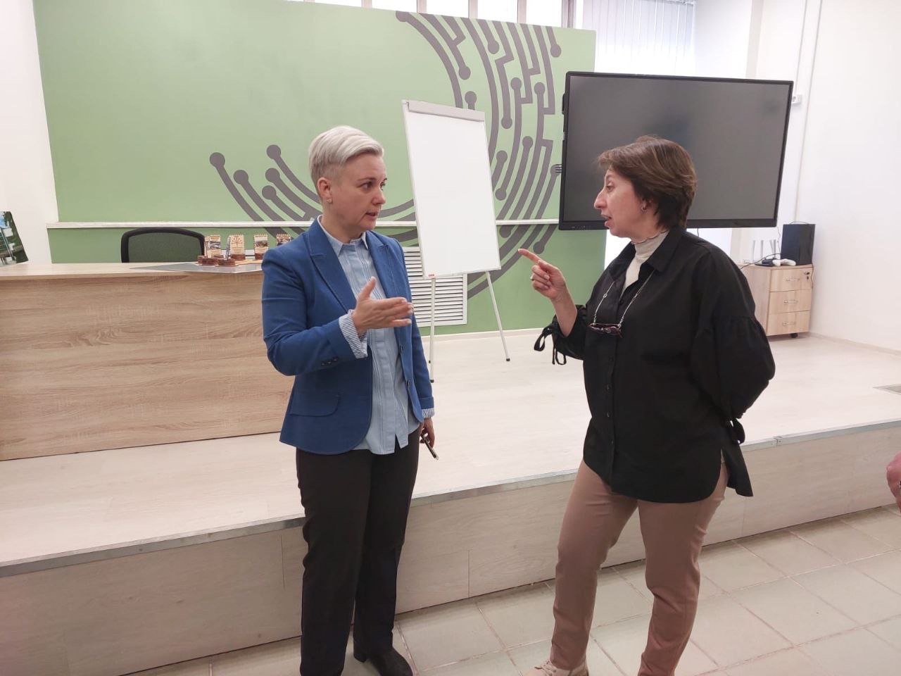 Также студенты приняли участие во встрече делегации из Новгорода, пообщались с представителями Министерства образования и науки. Состоялась встреча с заместителем министра Министерства образования и науки Республики Башкортостан Инессой Косолаповой, начальником отдела образования администрации Советского района г.Уфы Азаматом Сайфуллиным. Также гостем стала Наталья Уральская, первый заместитель министра образования Новгородской области.
