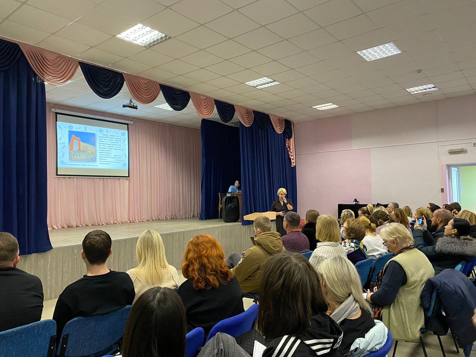 12 ноября в школе №56 Калининского района Уфы прошло очередное собрание учащихся 9 классов школ района. В зале присутствовало более 120 человек. Учащиеся и их родители в данный момент озадачены выбором будущей специальности. Перед собравшимися выступили представители уфимских колледжей.