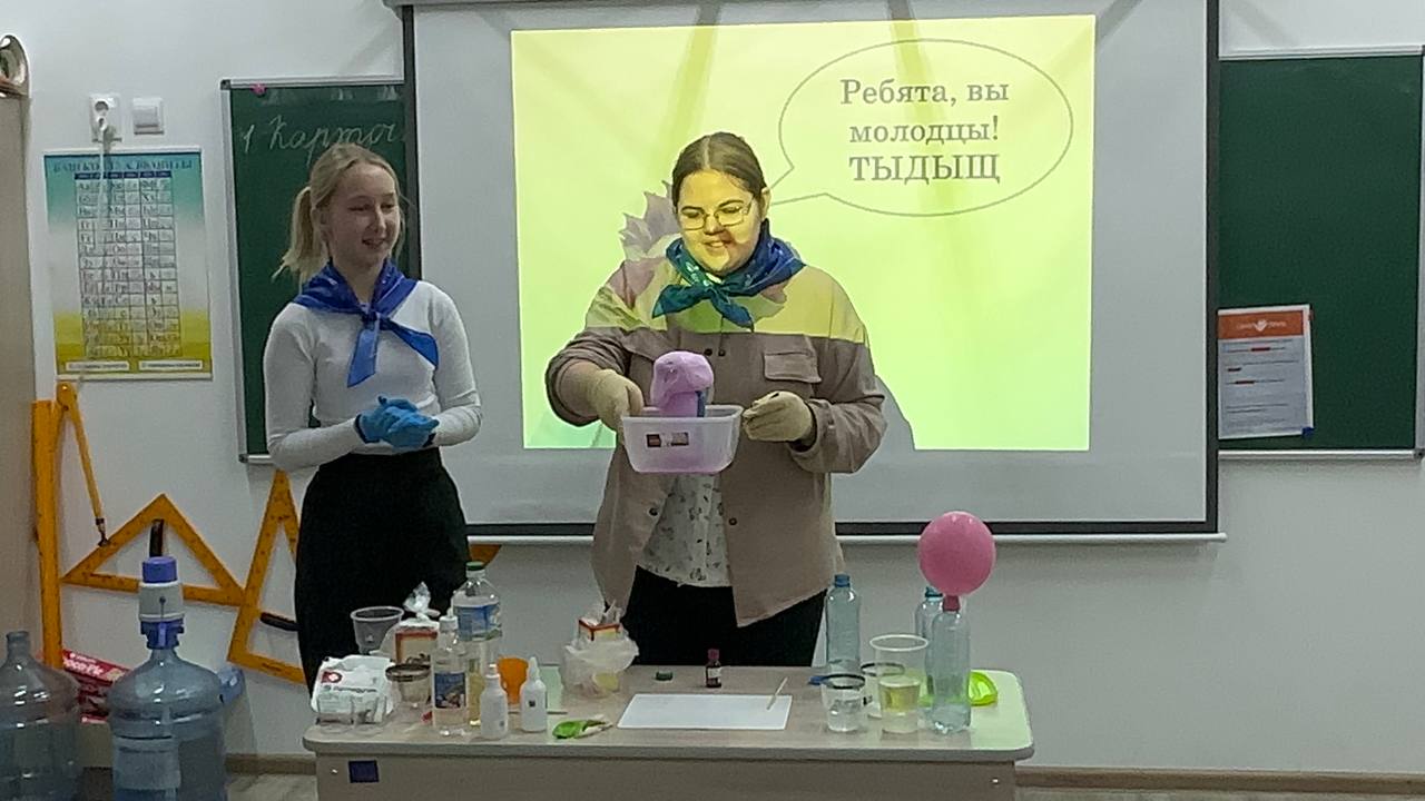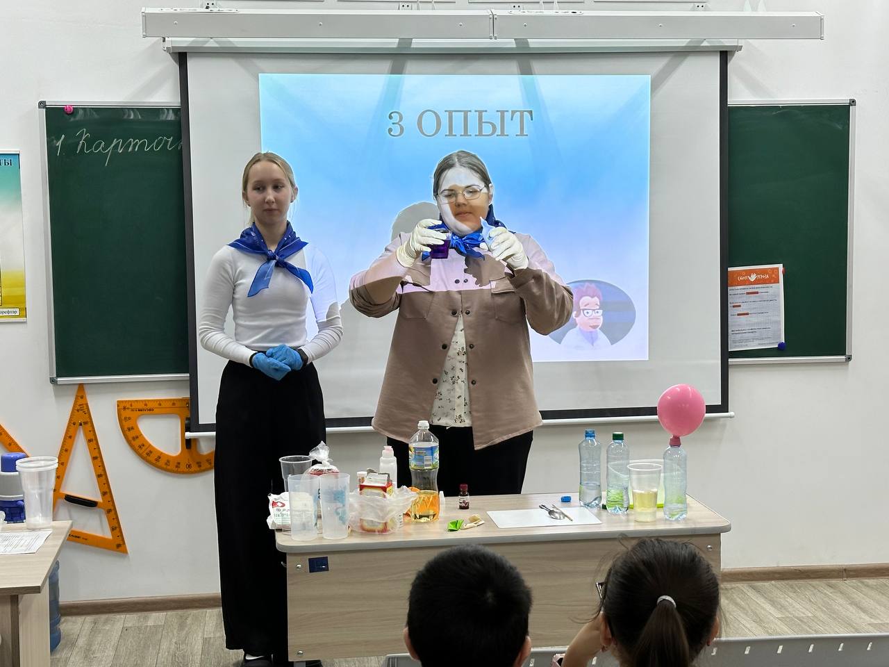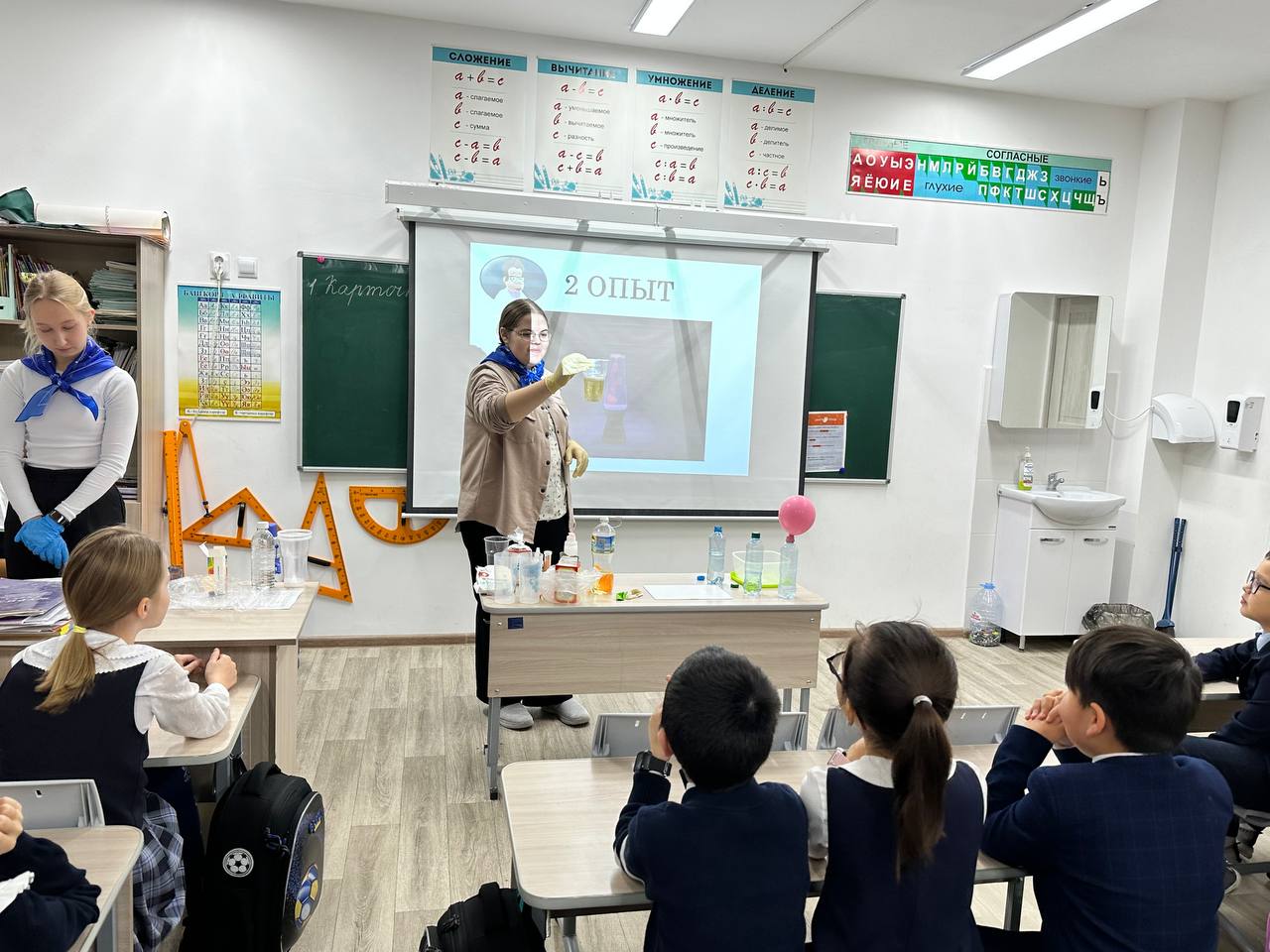 В рамках стажировки преподаватель Филатова Екатерина Александровна совместно со студентами провела экспериментальный урок в МАОУ «Башкирская гимназия № 158 им. Мустая Карима» во втором классе на тему «Химия и эксперименты, связанные с ней».
