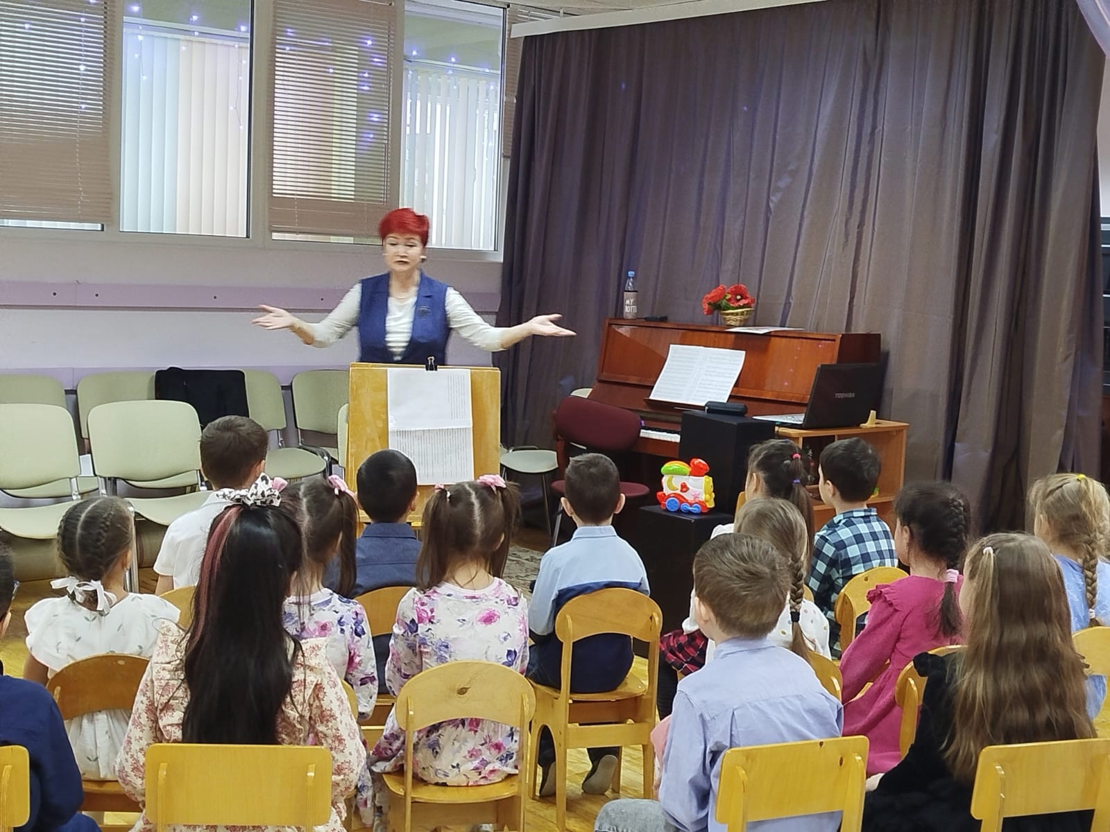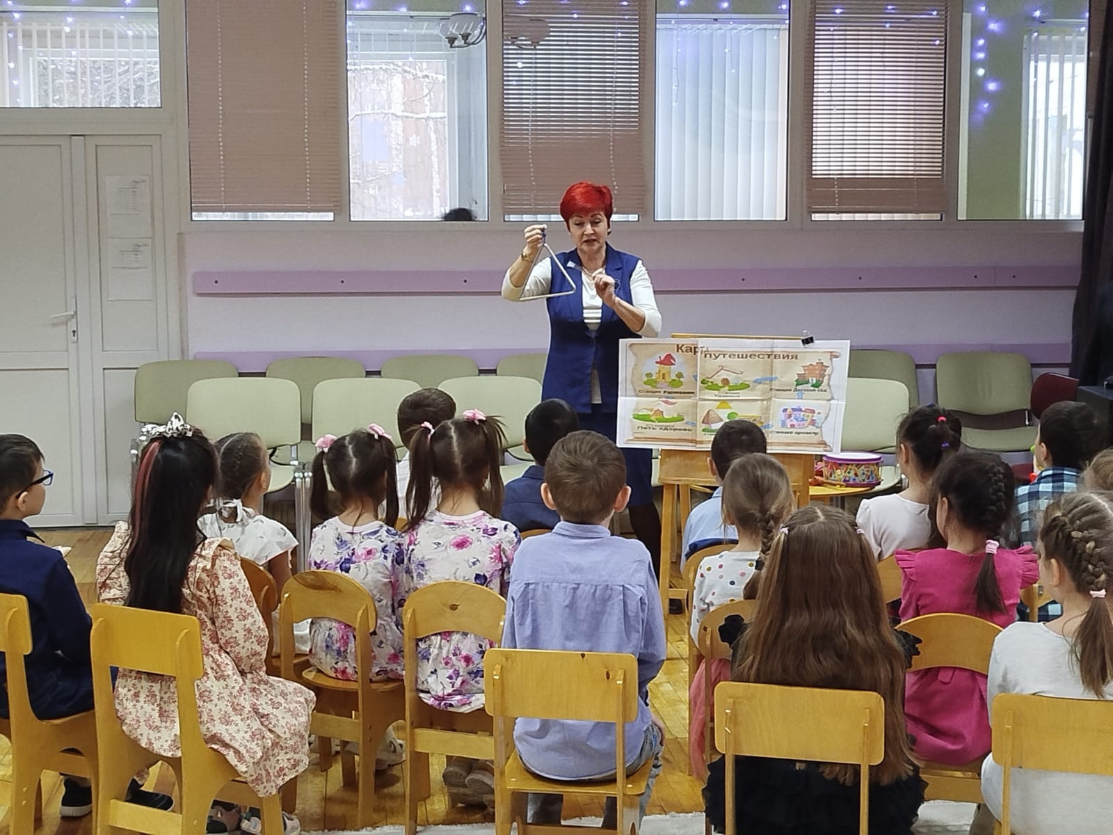 Ребята подготовительной группы "Одуванчики" вместе с преподавателем Колледжа Юферовой Альбиной Адонисовной отправились в страну музыкальных инструментов. В ходе путешествия ребята закрепили знания о музыкальных инструментах, побывали на станции распевания и ритмической импровизации и узнали, что наше тело - настоящий оркестр. Альбина Адонисовна познакомила детей с направлением "боди-перкуссия", в котором тело используется в качестве музыкального инструмента в виде хлопков, щелчков, притопов и т.п.