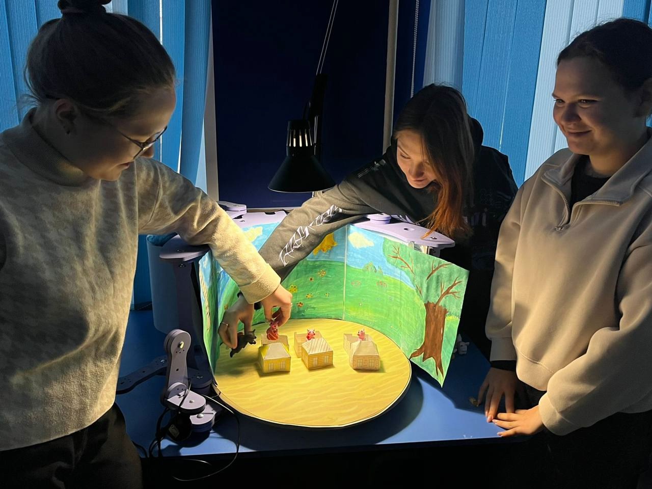 На этом уроке студенты адаптировали и проиграли известные русские народные сказки «Колобок», «Теремок» и «Три поросенка» с использованием мультстудии.