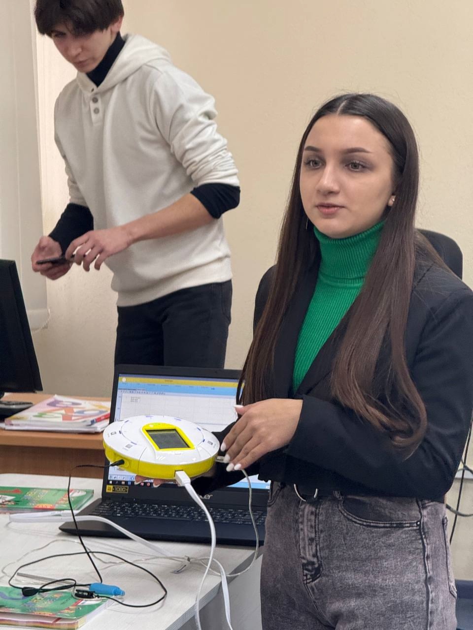 Также студентам был представлен мастер-класс по использованию устройства SenseDisc, которое помогает развивать сенсорные навыки у детей. Студенты узнали о том, как можно применять это оборудование для измерения температуры и пульса на уроках «Окружающего мира».