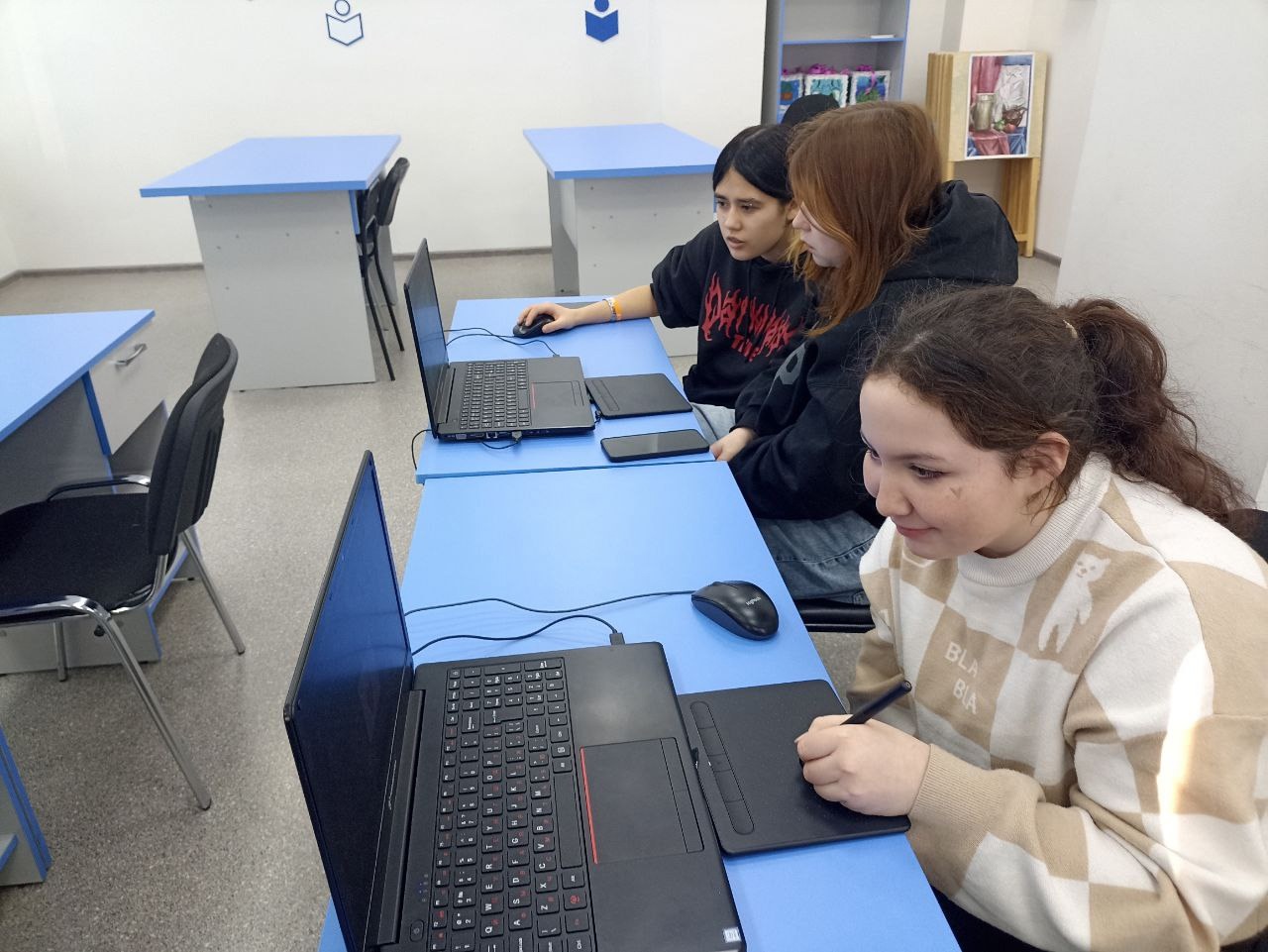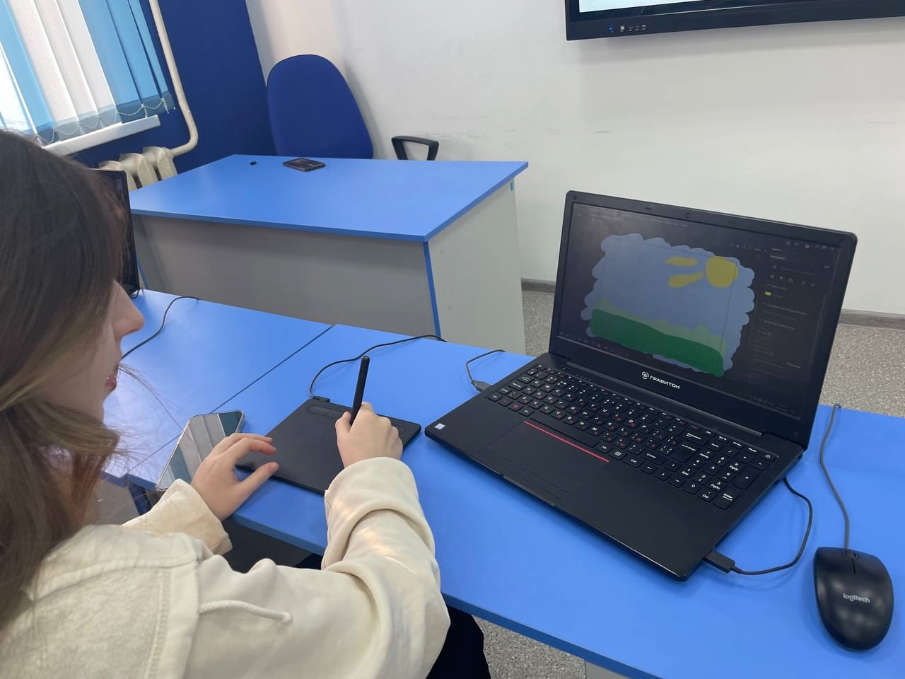 Тема занятия: "Графический дизайн, анимация, мультипликация". Студенты познакомились с возможностями создания графических объектов и разработки проектов при помощи графических планшетов и программы Adobe Animate. Знания и навыки отработали на конкретных практических заданиях. Занятия по графическому дизайну, анимации и мультипликации проводятся под руководством преподавателя Ильнура Мухаметрахимов