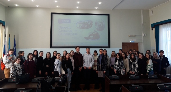 16 января 2023 г. под руководством куратора 1 курса направления 45.03.02 Лингвистика (направленность «Перевод и переводоведение) был организован и проведен кураторский час на тему «Героизм советских граждан в годы Великой Отечественной войны: прорыв блокады Ленинграда, Молодая гвардия». Данное мероприятие проводилось в рамках реализации проекта «Разговоры о важном».
