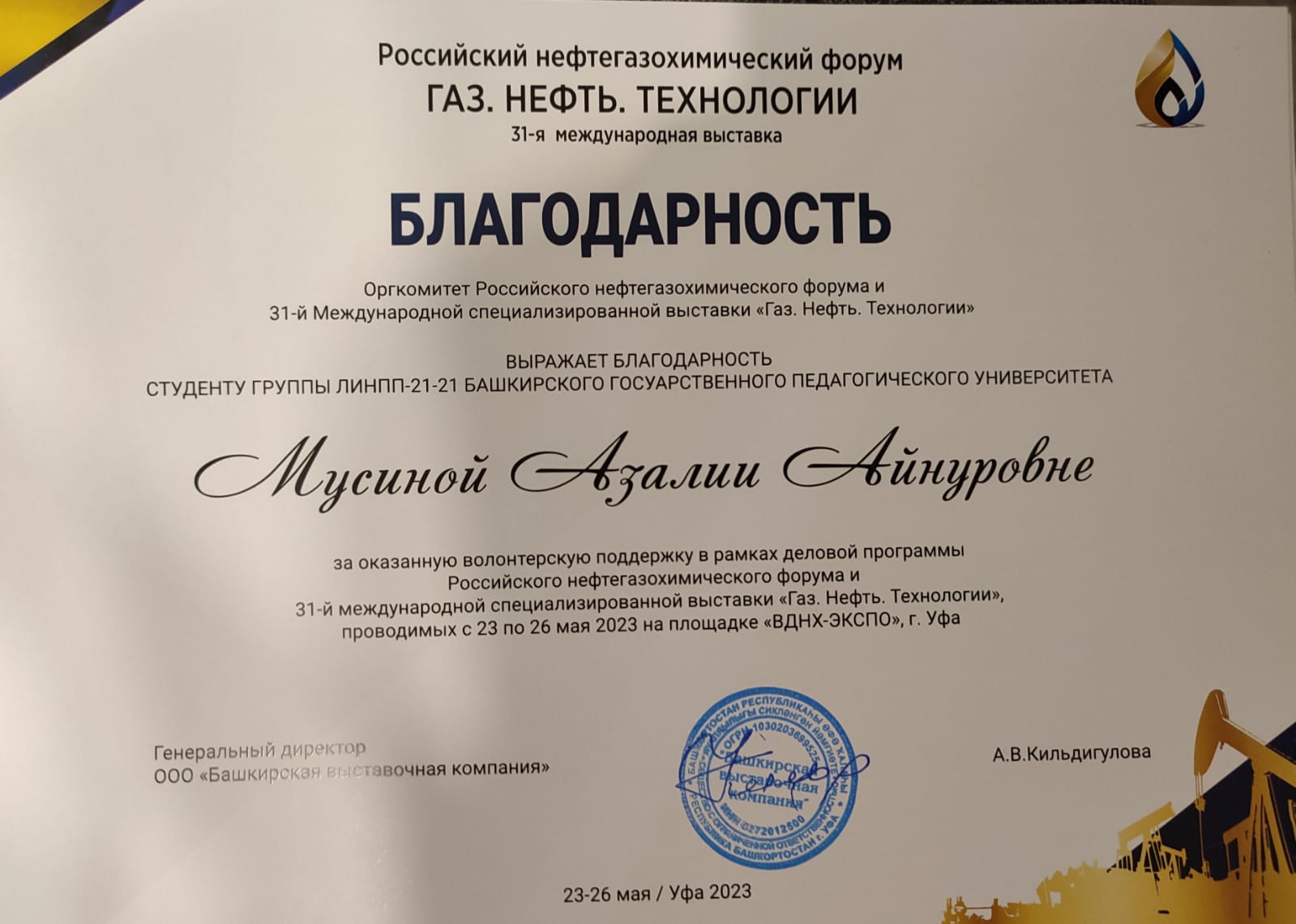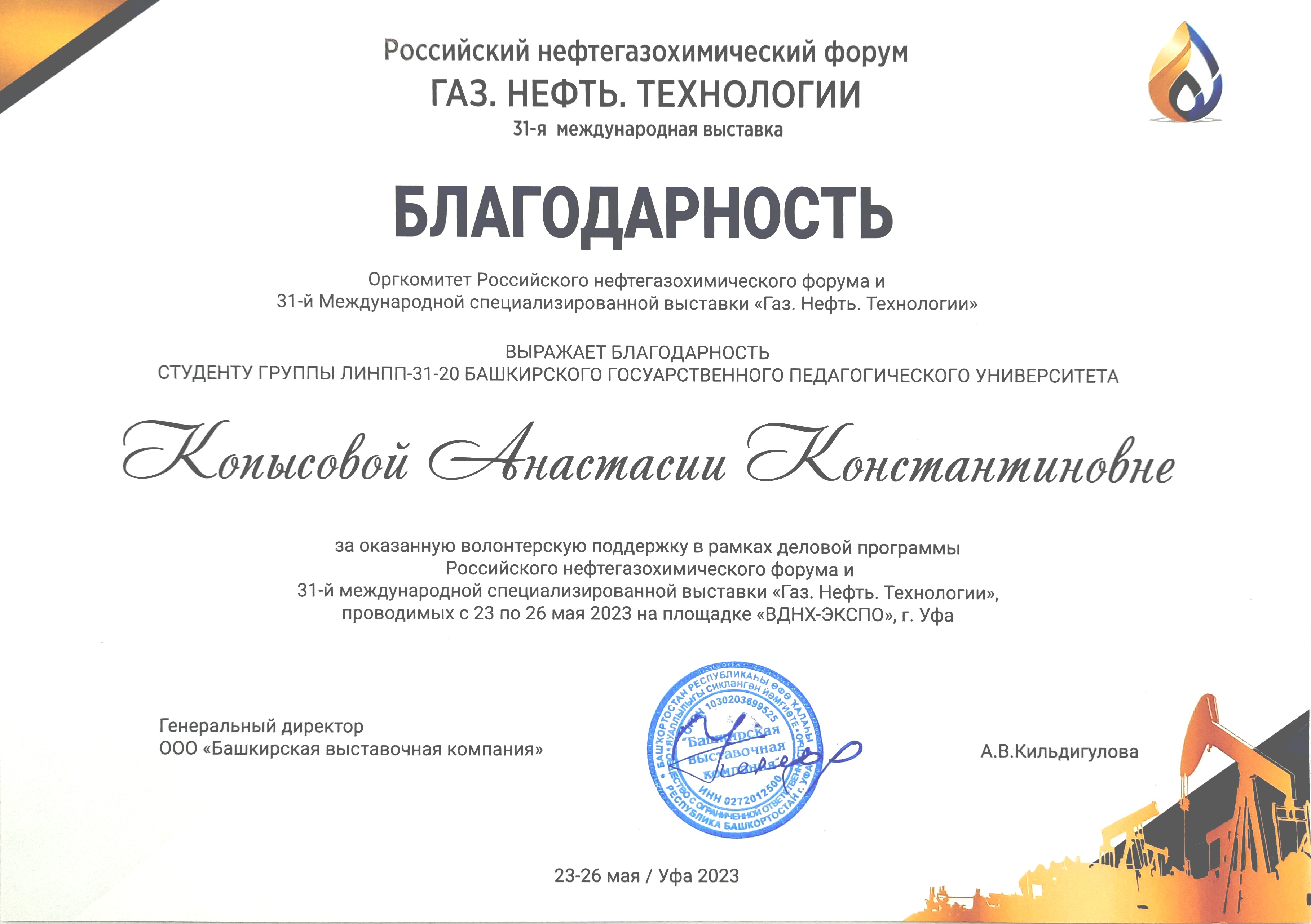 23 – 26 мая 2023 г. в Уфе в рамках Российского нефтегазохимического форума проходила XXXI Международная специализированная выставка «Газ. Нефть. Технологии - 2023».