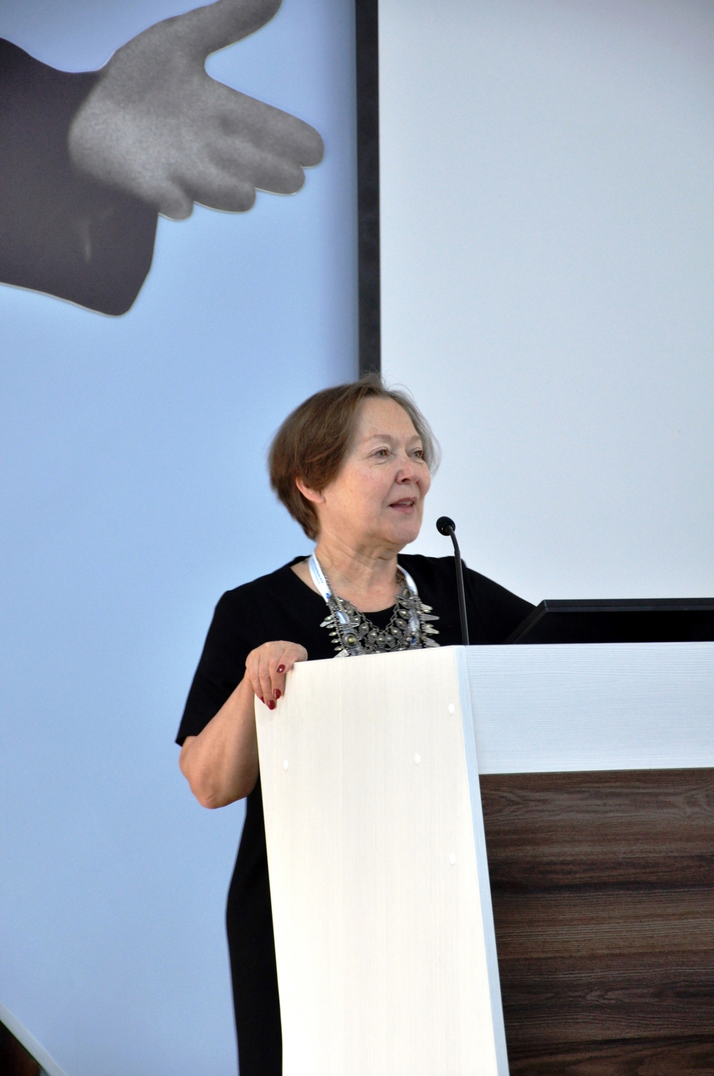 Участников Студенческого форума приветствовала Елена Анатольевна Кислова, председатель оргкомитета TFR-2023, руководитель «Бизнес-бюро Ассоциации переводчиков» (г. Екатеринбург).