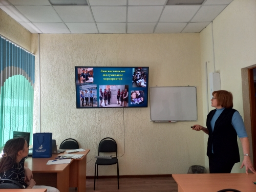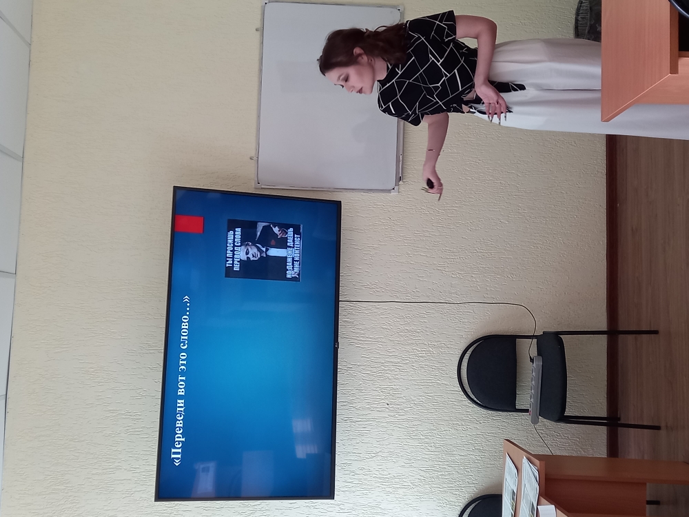 На одном из них и.о. зав. кафедрой межкультурной коммуникации и перевода Ю.Р. Юсупова рассказала обучающимся о специфике программы 45.03.02 Лингвистика, направленность «Перевод и переводоведение», а студентка группы 32-21 Имаева Лиана поделилась своим впечатлением от обучения по этой программе. Затем Юлия Рустэмовна вместе Лианой провели мастер-класс «Переводческая мастерская», в ходе которого участники мероприятия исправили ошибки в машинном переводе, познакомились с некоторыми трудностями, с которыми приходится сталкиваться переводчику. Самые активные участники были награждены небольшими памятными и сладкими призами.