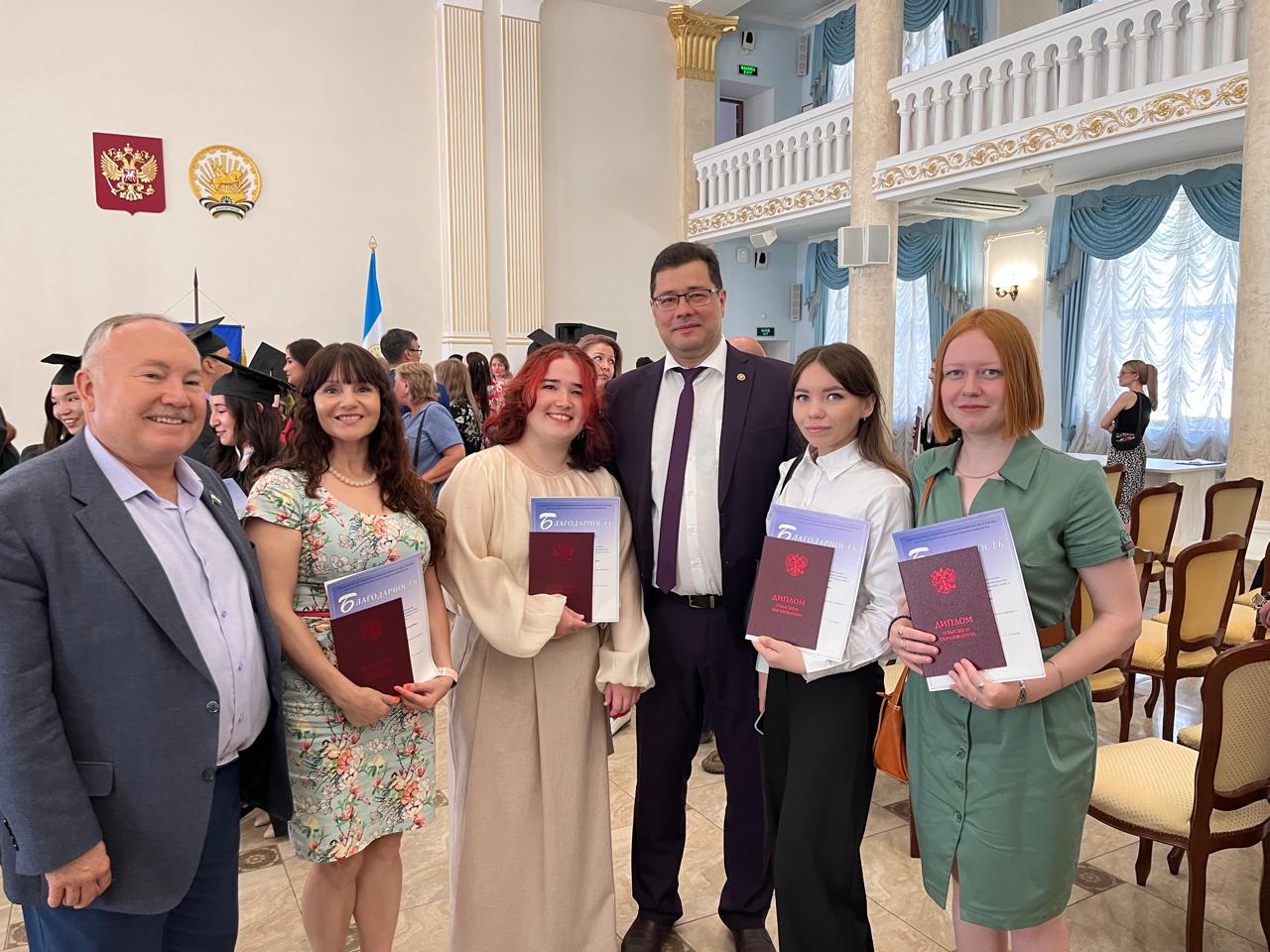 Диплом магистра лингвистики с отличием был вручен 5 выпускникам: Гиззатулиной Р.Р., Егоровой М.Ю., Гареевой И.Т., Овчинниковой С.Т., Мирзазановой Р.Ф.