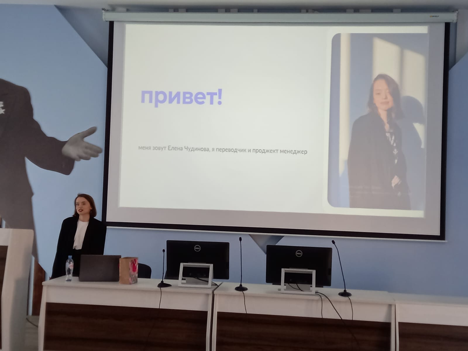 Гостем встречи стала выпускница кафедры межкультурной коммуникации и перевода Елена Чудинова - практикующий устный и письменный переводчик, менеджер проектов компании LocalTrans (г. Москва). Она рассказала о своем пути в переводческой индустрии, о трудностях, с которым пришлось столкнуться, поделилась ссылками на полезные ресурсы и ответила на вопросы аудитории. Встреча прошла в теплой и дружеской обстановке.