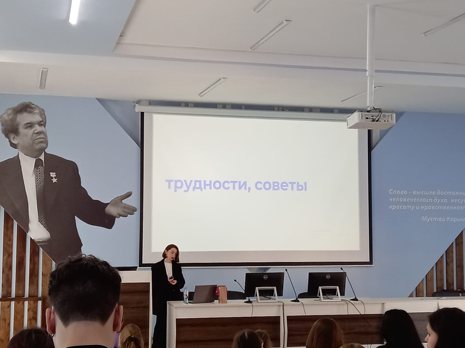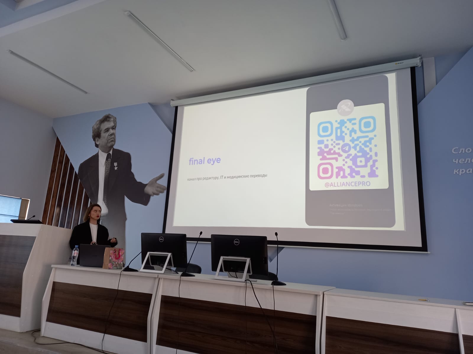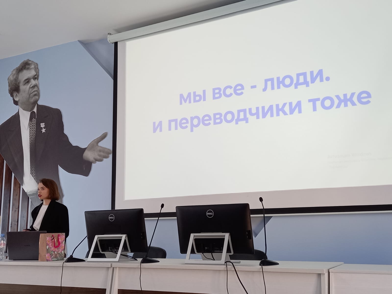 С презентацией о выпускниках кафедры, работающих переводчиками, выступила и.о. зав. кафедрой межкультурной коммуникации и перевода, к.ф.н., доцент Ю.Р. Юсупова.