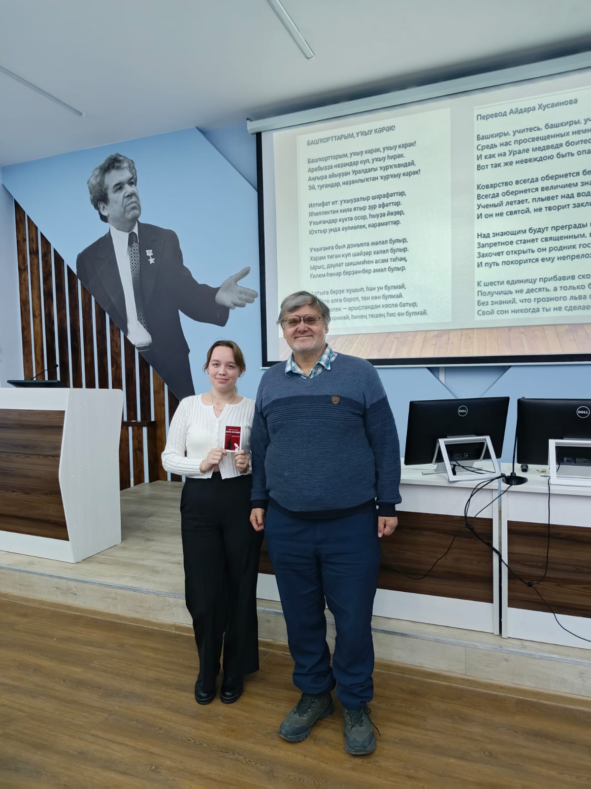 В ходе встречи Айдар Гайдарович также поделился своим переводческим опытом и ответил на вопросы студентов. По окончании встречи он вручил самой активной участнице (студентке 1 курса, гр. ЛИНПП-11-24 Валиевой Регине) приз – юбилейное издание афоризмов «Анти-бусидо. Путь Уфимца» со своим автографом.