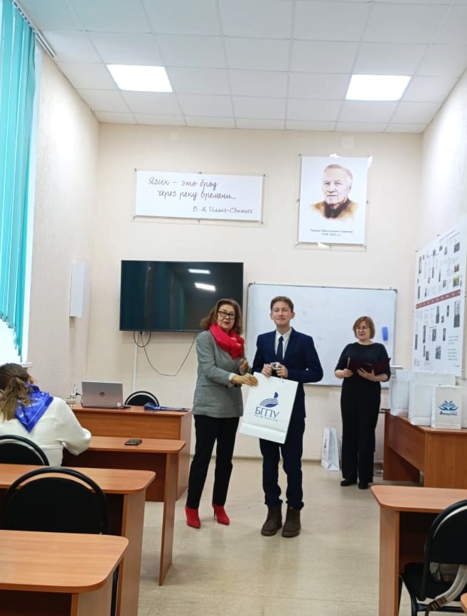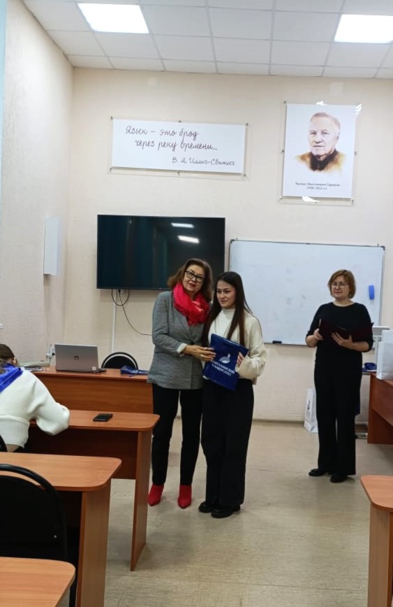 В номинации «Лучший художественный поэтический перевод произведений М.Акмуллы на иностранные языки (английский, французский немецкий)», координатором которой являлся ИФОМК, после экспертного отбора приняло участие 69 человек. Из них компетентное жюри выбрало 18 победителей и призеров в группах: «обучающиеся школ», «студенты среднеспециальных учебных заведений» и «студенты вузов». Для них кандидат филол.наук, доцент кафедры межкультурной коммуникации и перевода Ольга Геннадьевна Дудочкина провела мастер-класс на тему «Тонкости художественного перевода».