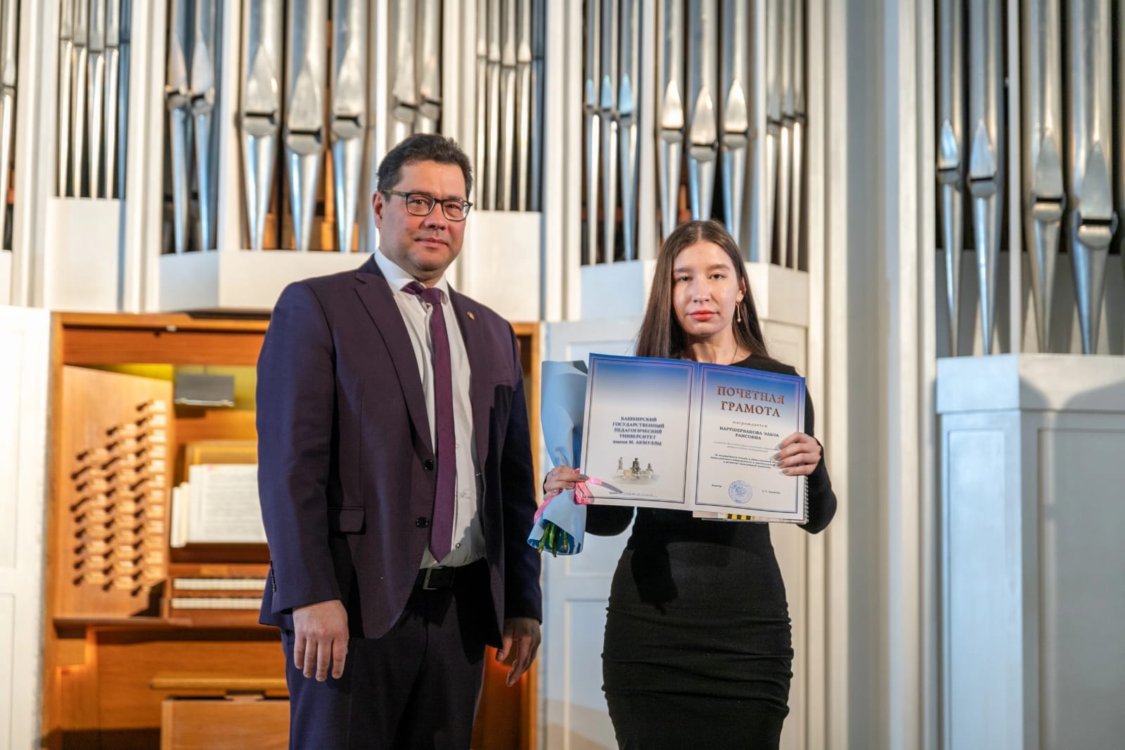 Преподавателей, сотрудников и студентов-активистов БГПУ имени Акмуллы поздравили Салават Талгатович Сагитов и директор Лицея №6 им. Н.Д. Сафина г.Уфы, председатель Республиканской организации Профессионального союза работников народного образования Елена Робертовна Хаффазова.