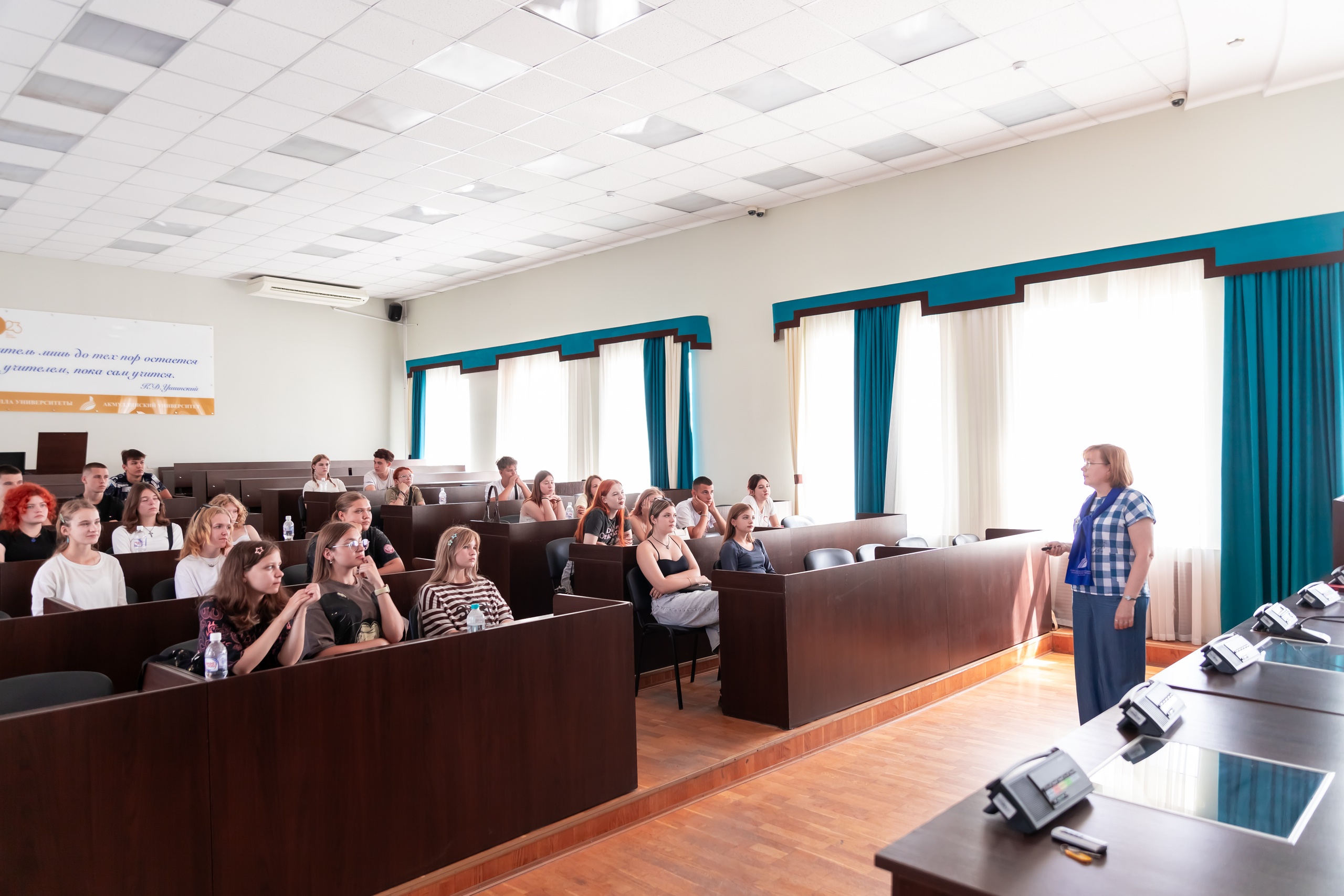 В третий день смены, 21 июля 2025г., в рамках программы «Акмуллинская академия» ребята проходили профессиональные пробы в Институте филологического образования и межкультурных коммуникаций. Интерактивное занятие с ребятами с разным уровнем подготовки по английскому языку проводила и.о. зав.кафедрой межкультурной коммуникации и перевода, к.ф.н., доцент Юлия Юсупова. Школьники проявили неподдельный интерес к теме занятия, активно выполняли задания и выразили свои положительные эмоции и благодарность за проведенный мастер-класс.